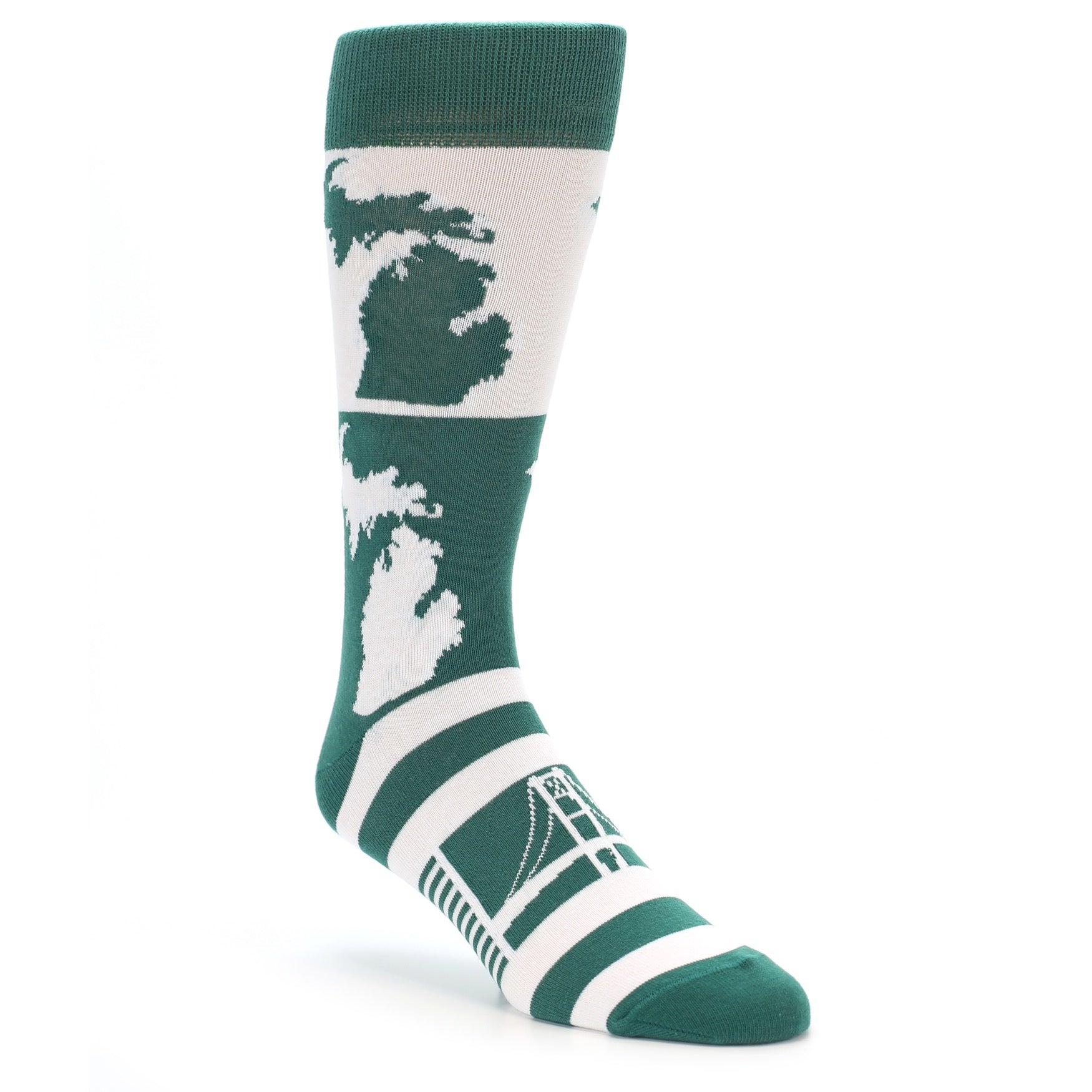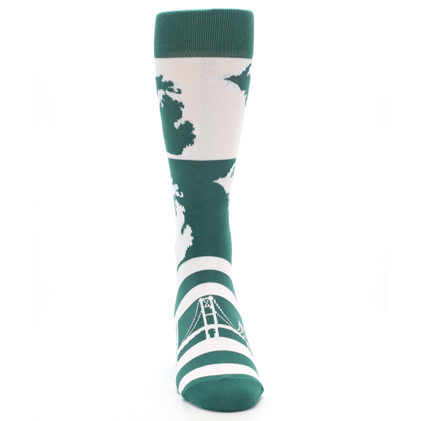 Green White Michigan Socks - Men's Novelty Dress Socks
