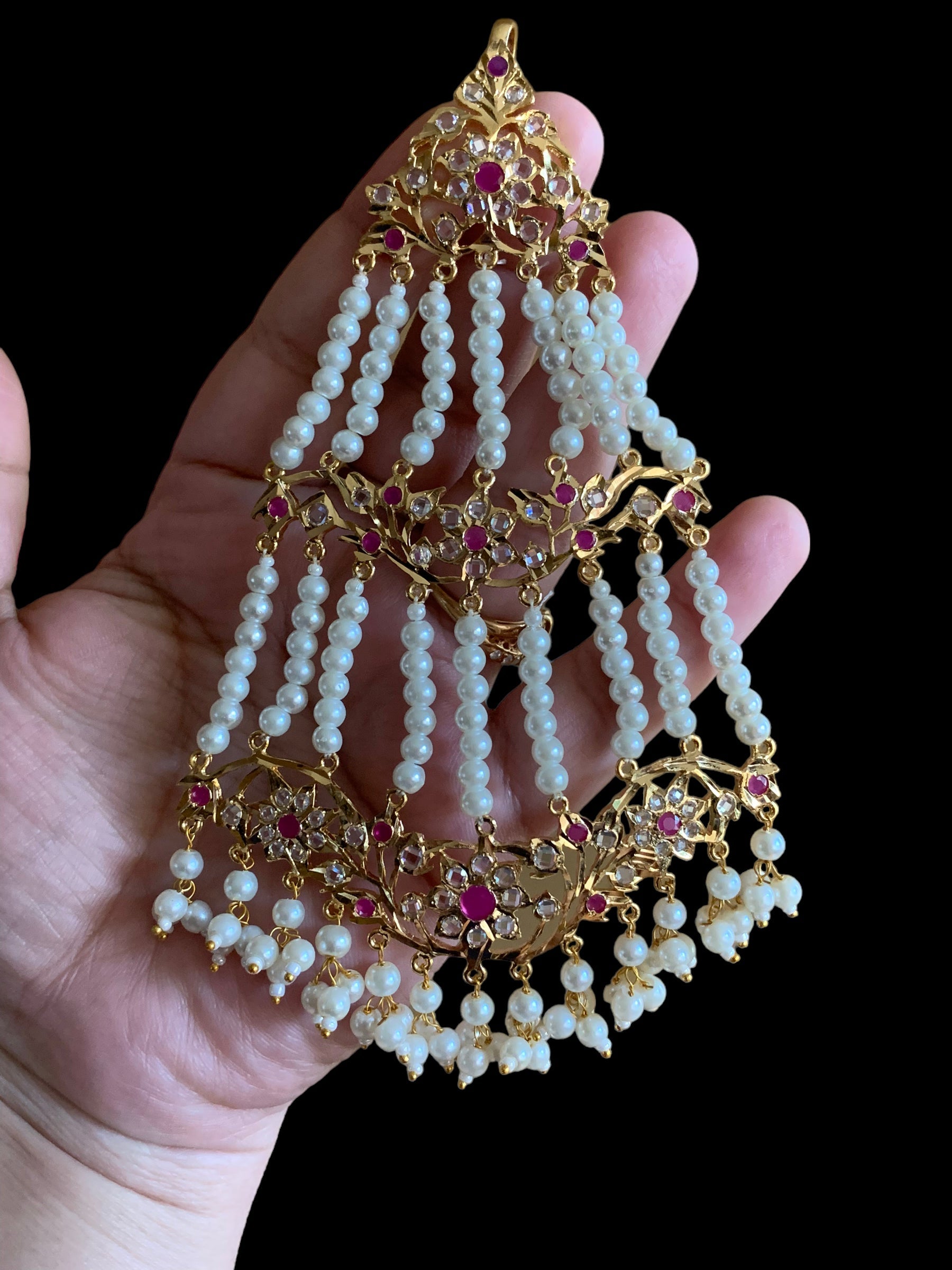 Made using polki with shell pearls and 22ct gold plating
