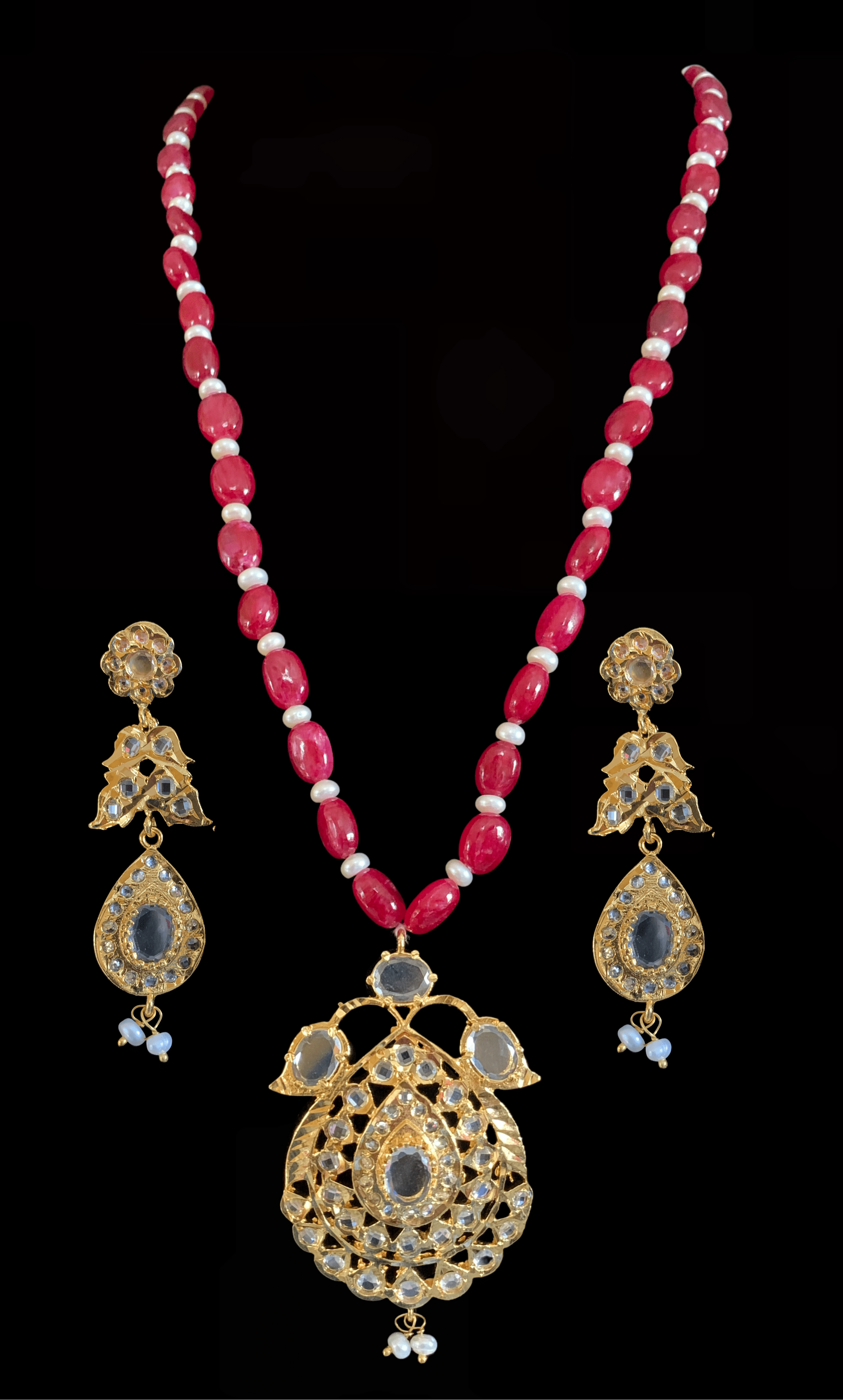 PS515 Jugni in ruby beads with fresh water pearls ( READY TO SHIP )