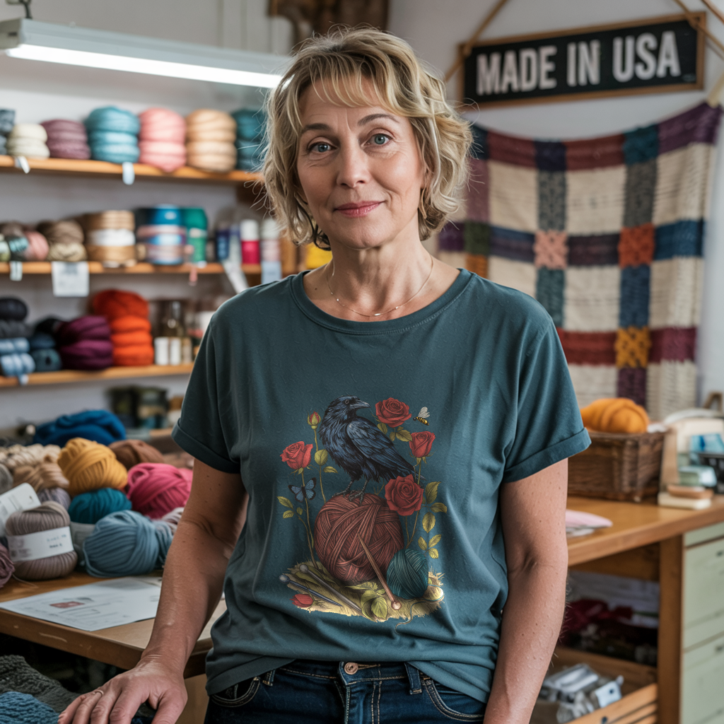 🖤🌹 Raven & Rose Threads T‑Shirt – Gothic Grace Meets Yarned Beauty