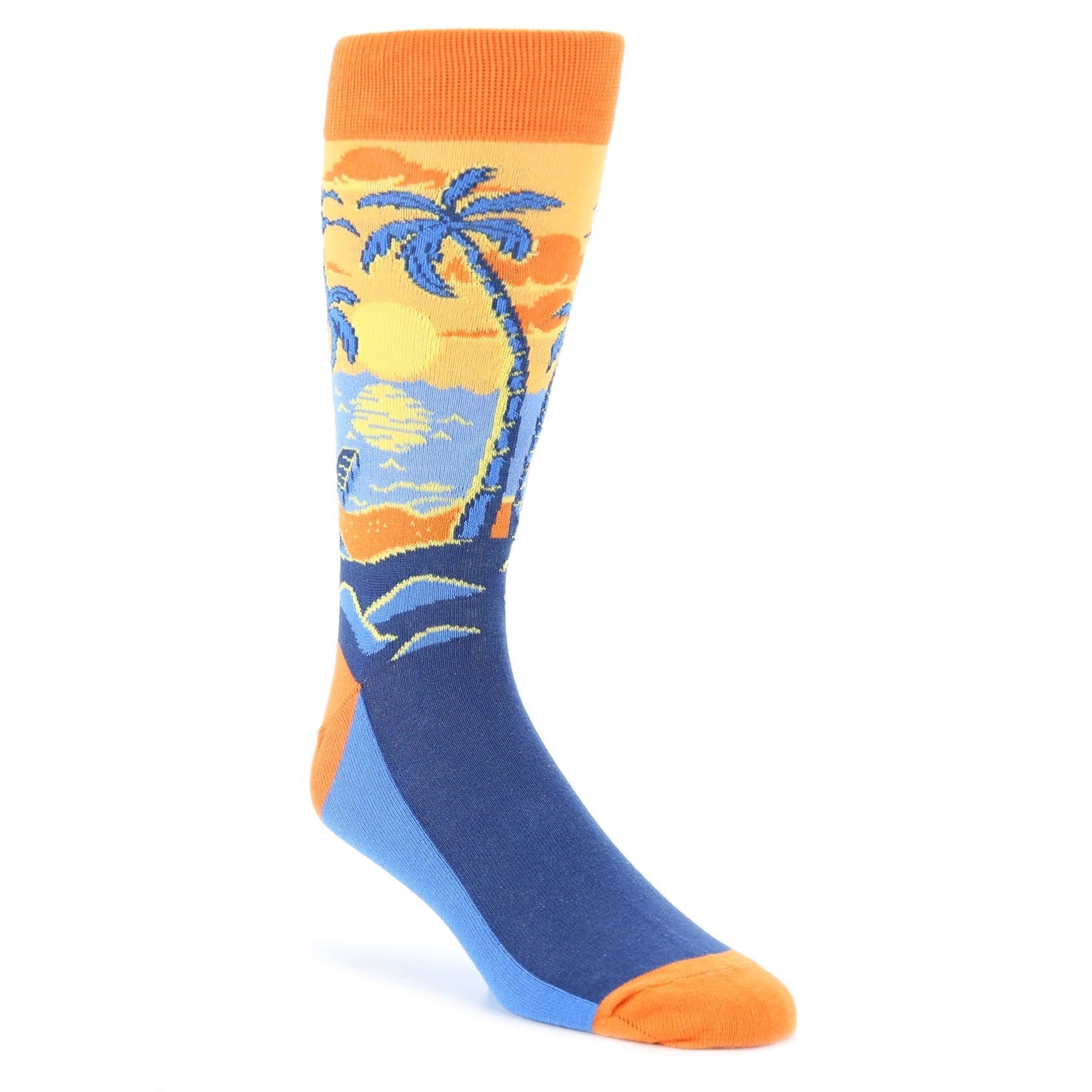 Take your toes on vacation with these novelty socks. Beautiful sunset socks will transport you to a beach oasis instantly and will guarantee smooth sailing wherever you take them. Dress socks with a fun tropical twist, you can wear these fun socks on or off vacation. These are also available as big and tall socks, so our XL socks fans will have cool socks to wear, too!