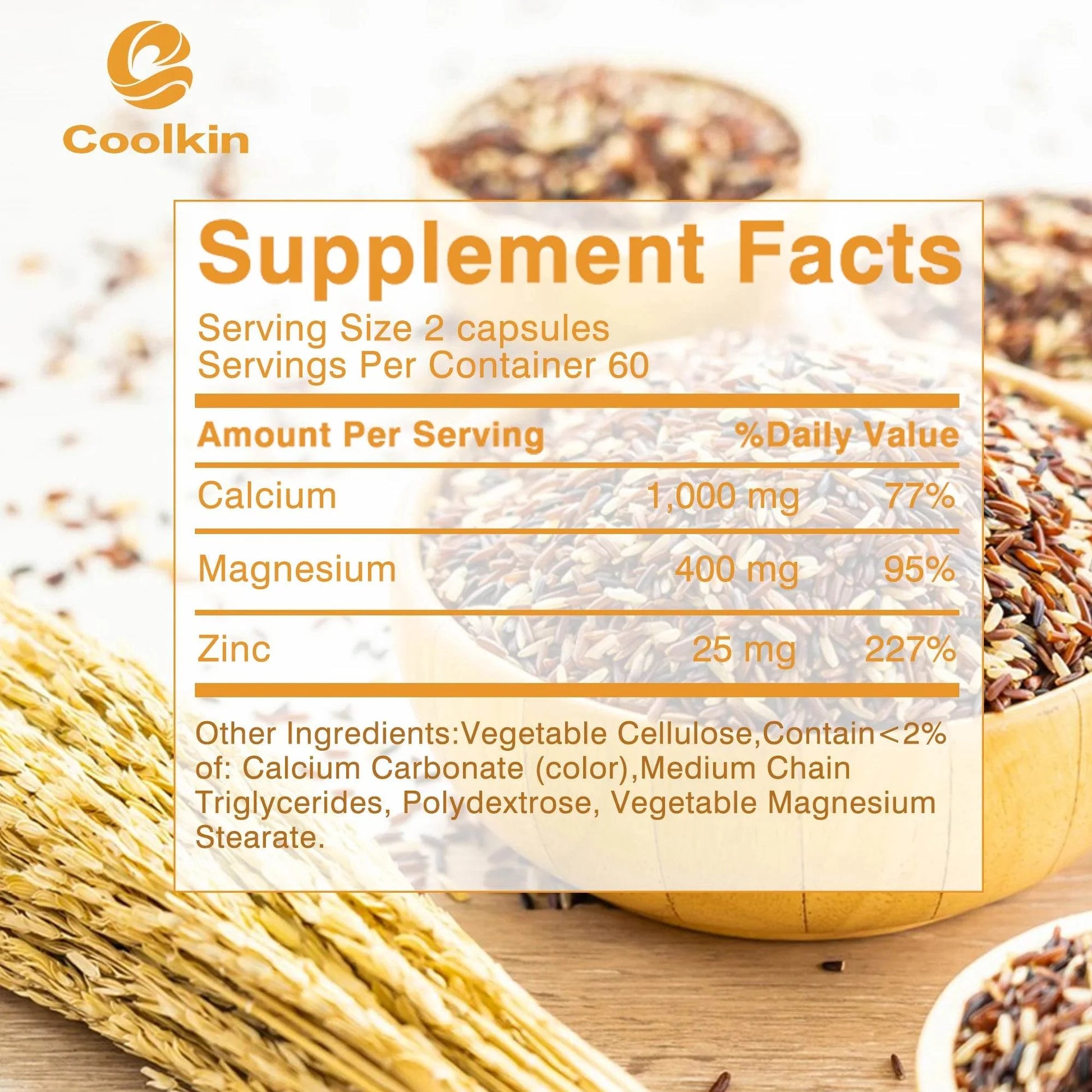 Calcium + Magnesium + Zinc Capsules - Supports Bone Health, Nerve and Muscle Function, Immune Support - 120 Capsules