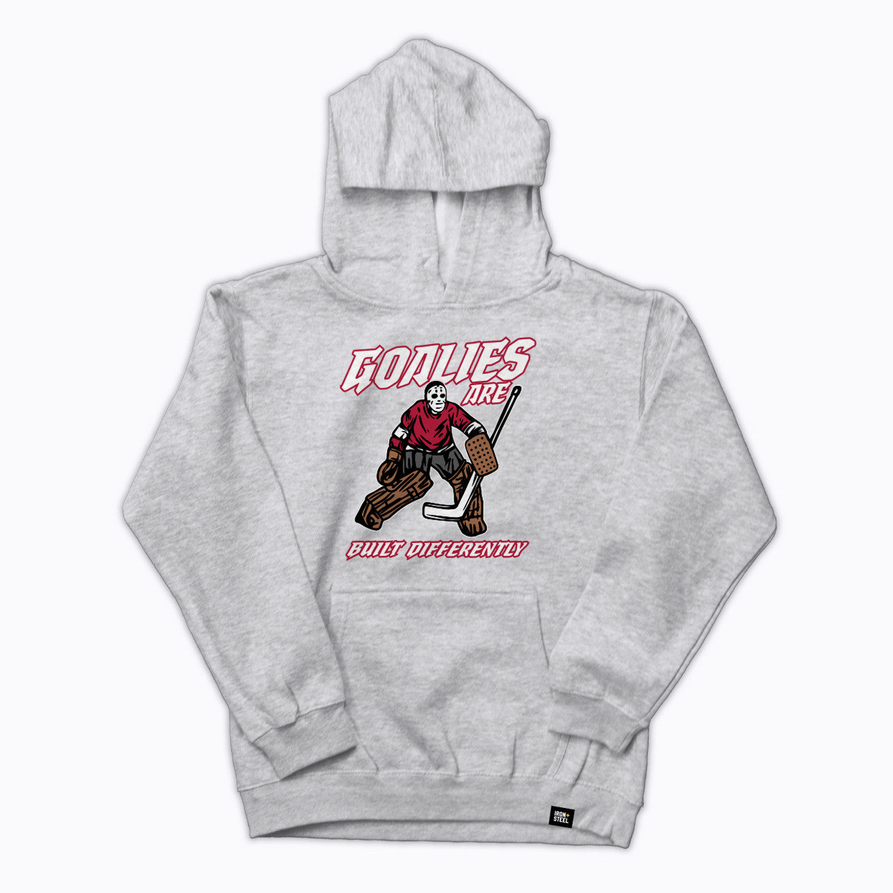 The bold "Goalies Are Built Differently" graphic showcases a fierce, unshakable attitude that only true goalies possess. Complete with a comfy hood and a spacious kangaroo pocket, this hoodie is a must-have for every young goalie who’s not afraid to stand tall and protect the crease. Because being a goalie isn't just a position—it's a mentality!