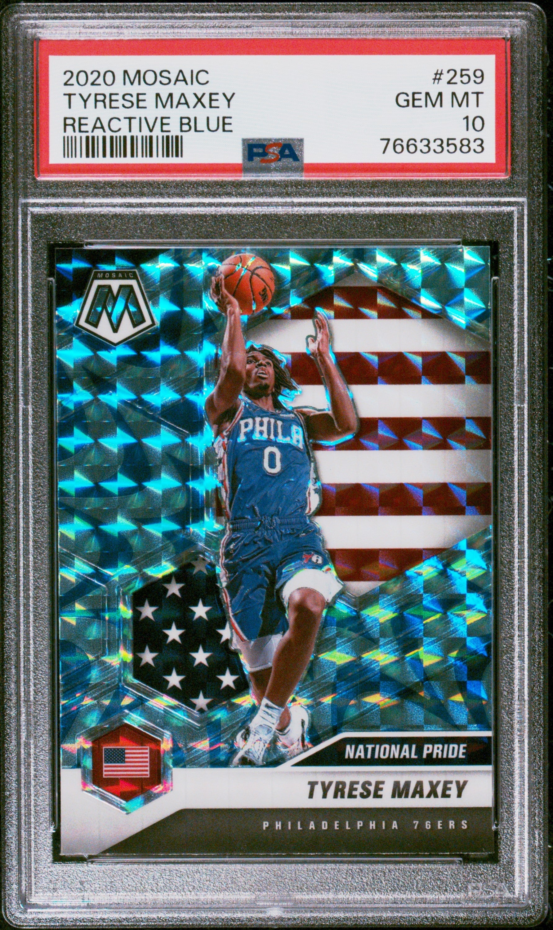Graded 2020 Panini Mosaic Tyrese Maxey #259 Reactive Blue Rookie RC Basketball Card PSA 10 Gem Mint