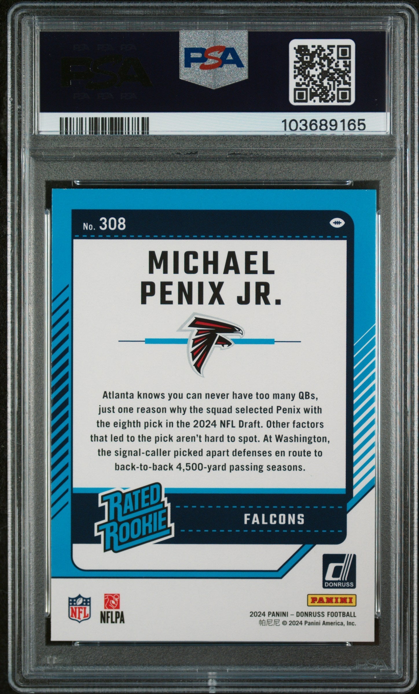 Graded 2024 Panini Donruss Michael Penix Jr #308 Rookie RC Football Card PSA 10 Gem Mint