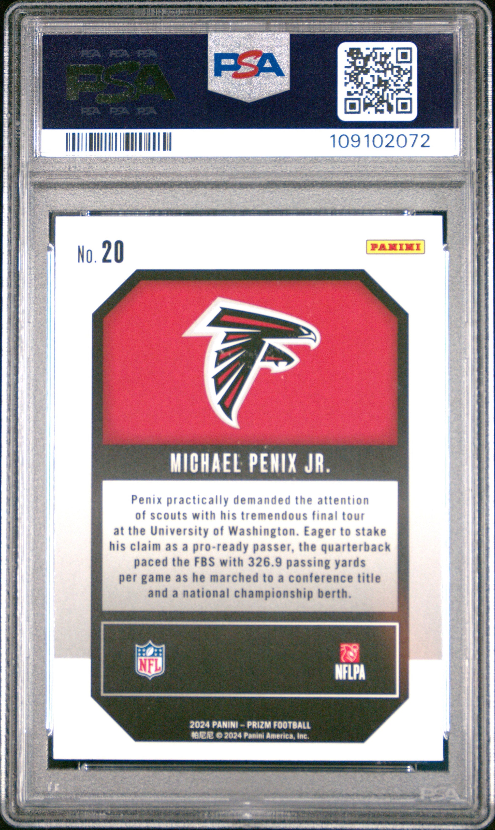 Graded 2024 Panini Prizm Michael Penix Jr #20 Emergent Rookie RC Football Card PSA 10 Gem Mint