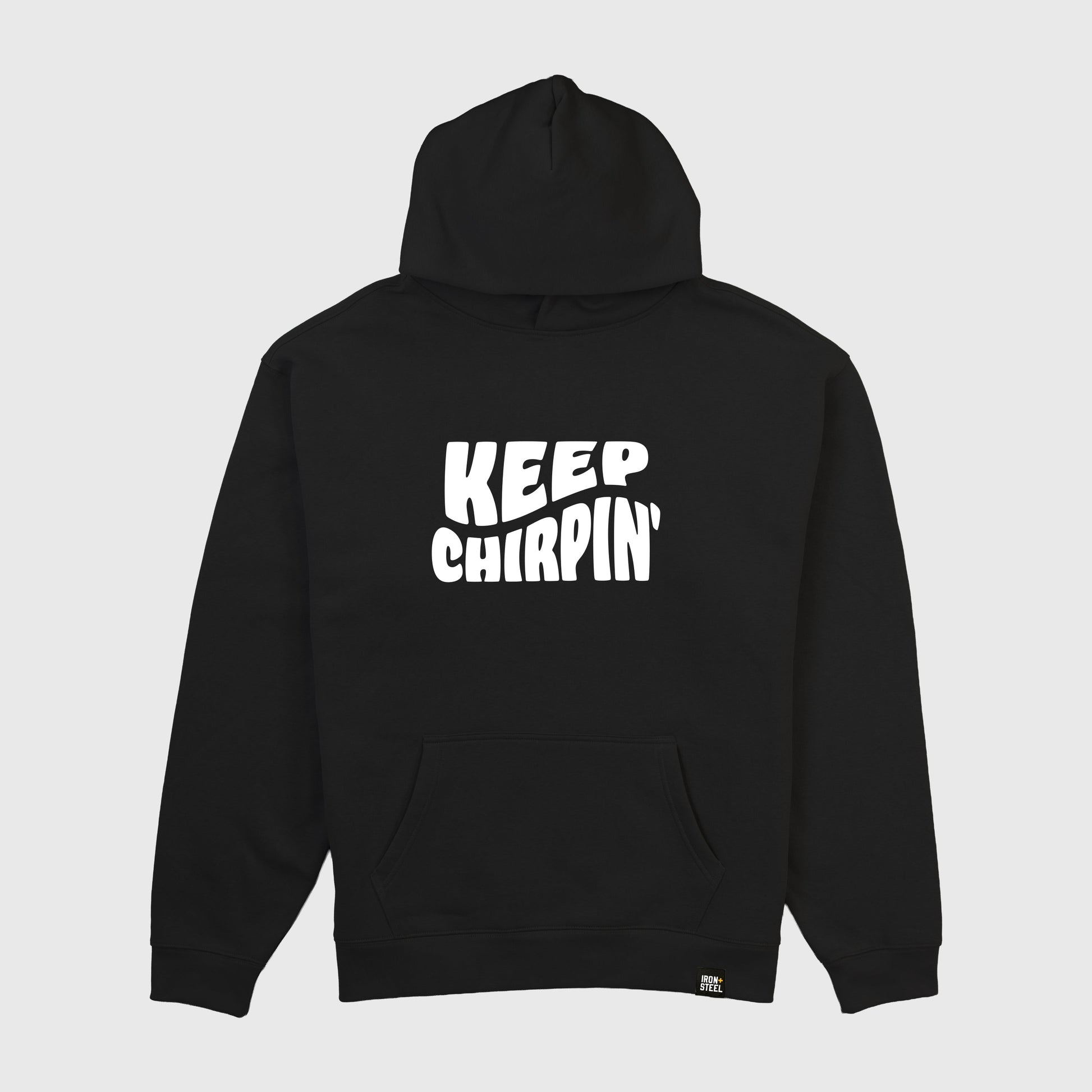 Wear the 'Keep Chirpin' Hoodie' by Iron+Steel Threads, a perfect blend of comfort and style for the dedicated hockey enthusiast. This hockey hoodie is a true testament to your unshakable focus on the ice. Part of our premium ice hockey apparel line, it’s designed to keep you warm and ready for the game, whether you're on the rink or off.