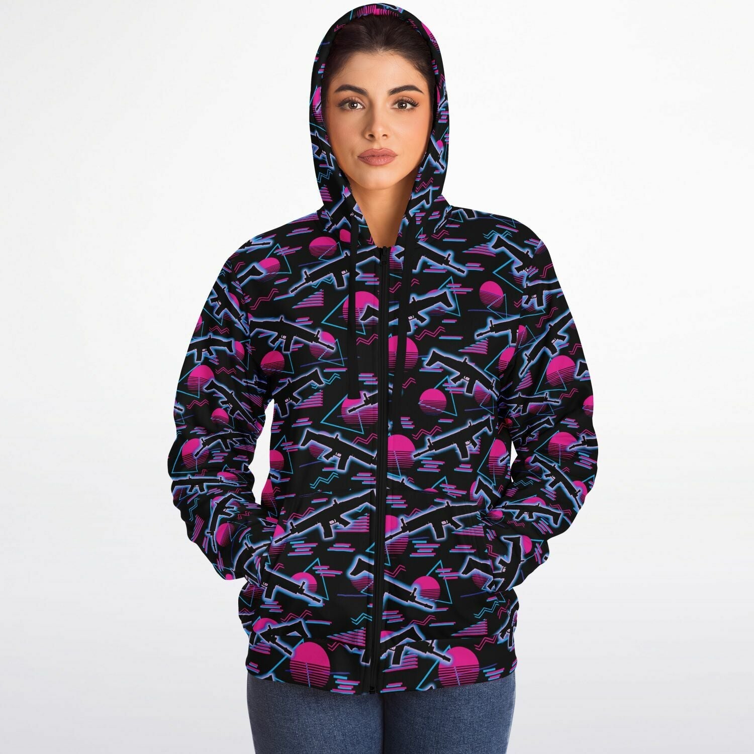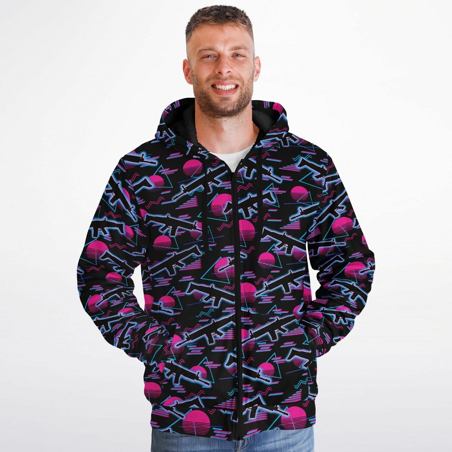 This microfleece zip-up hoodie features a soft and durable fabric. The microfleece lining on the inside will make this your most comfy zip-up hoodie ever! It also comes with a visible nylon zipper front closure. Each panel is individually printed, cut and sewn to ensure a flawless graphic with no imperfections.
