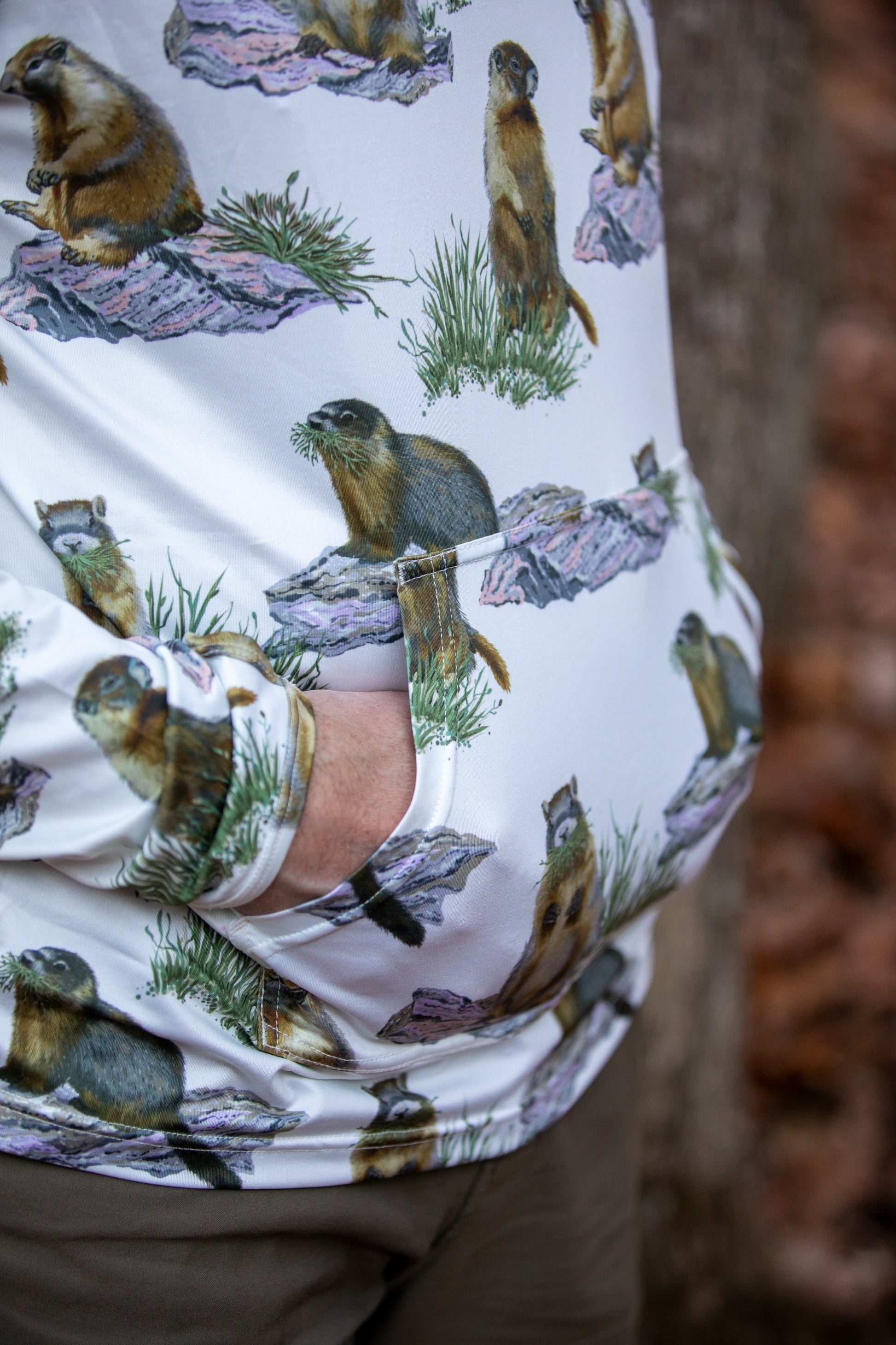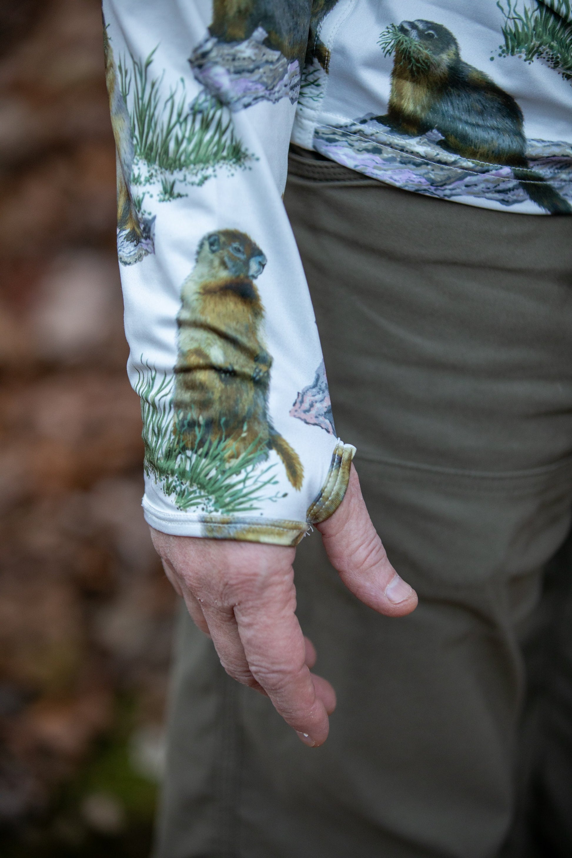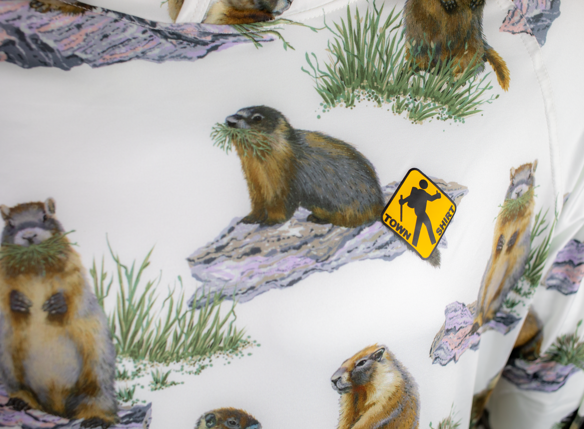 True-To-Trail Print: Inspired by the many many Marmots nicknamed Rock Chuck found on numerous western trails, this print features everyone's favorite hiking mascot.