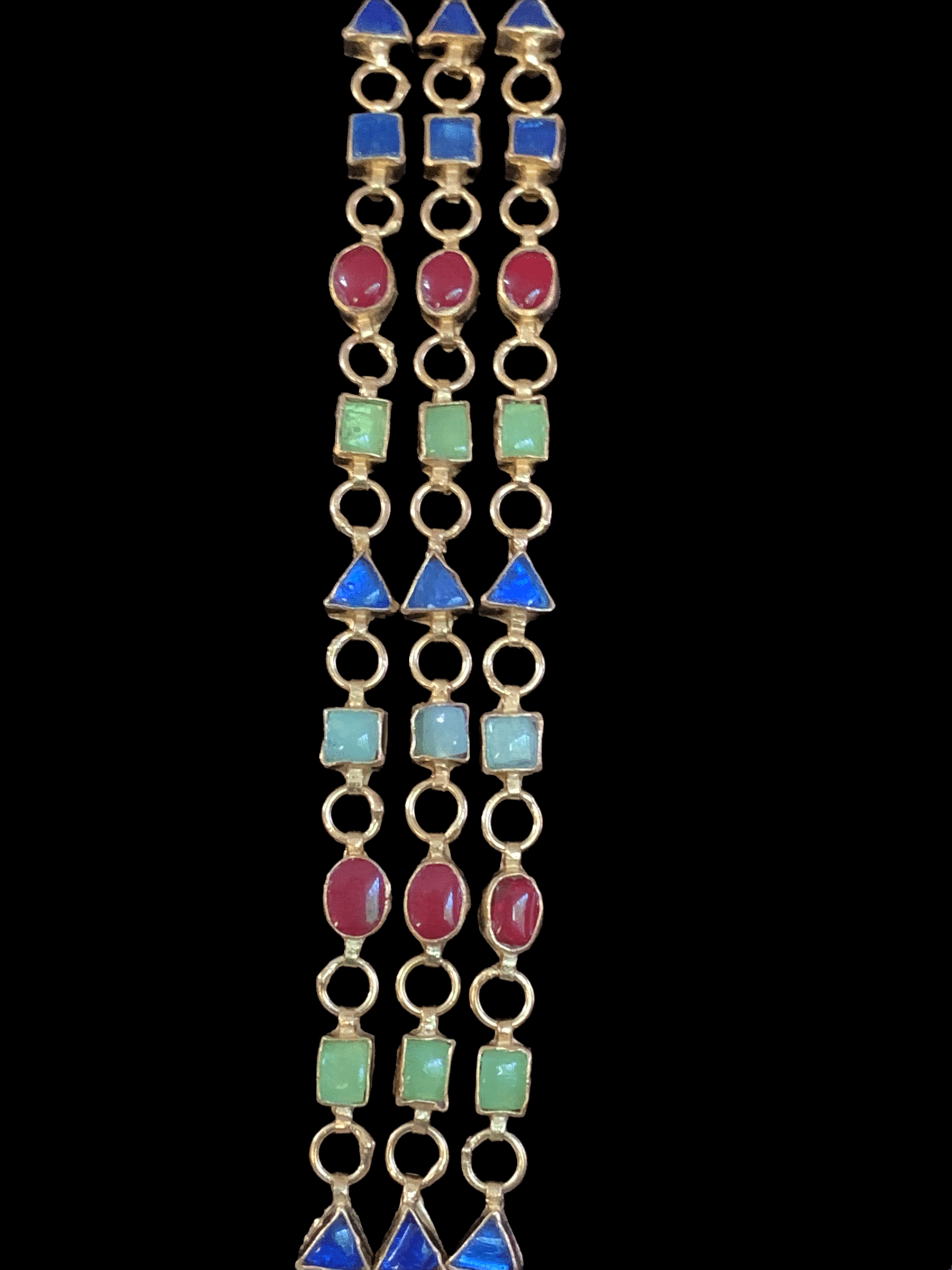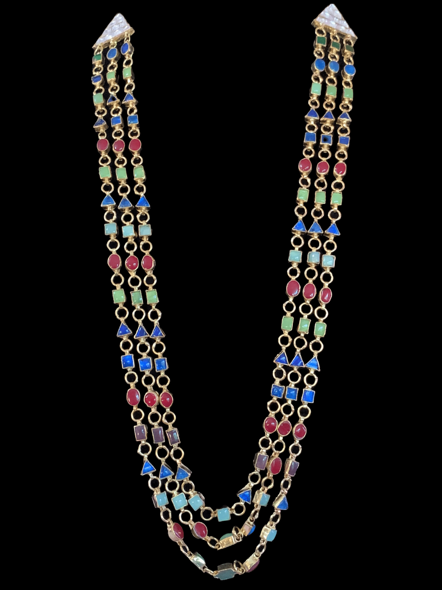 SAT48 Nayana three layer navratan mala with earrings ( READY TO SHIP)