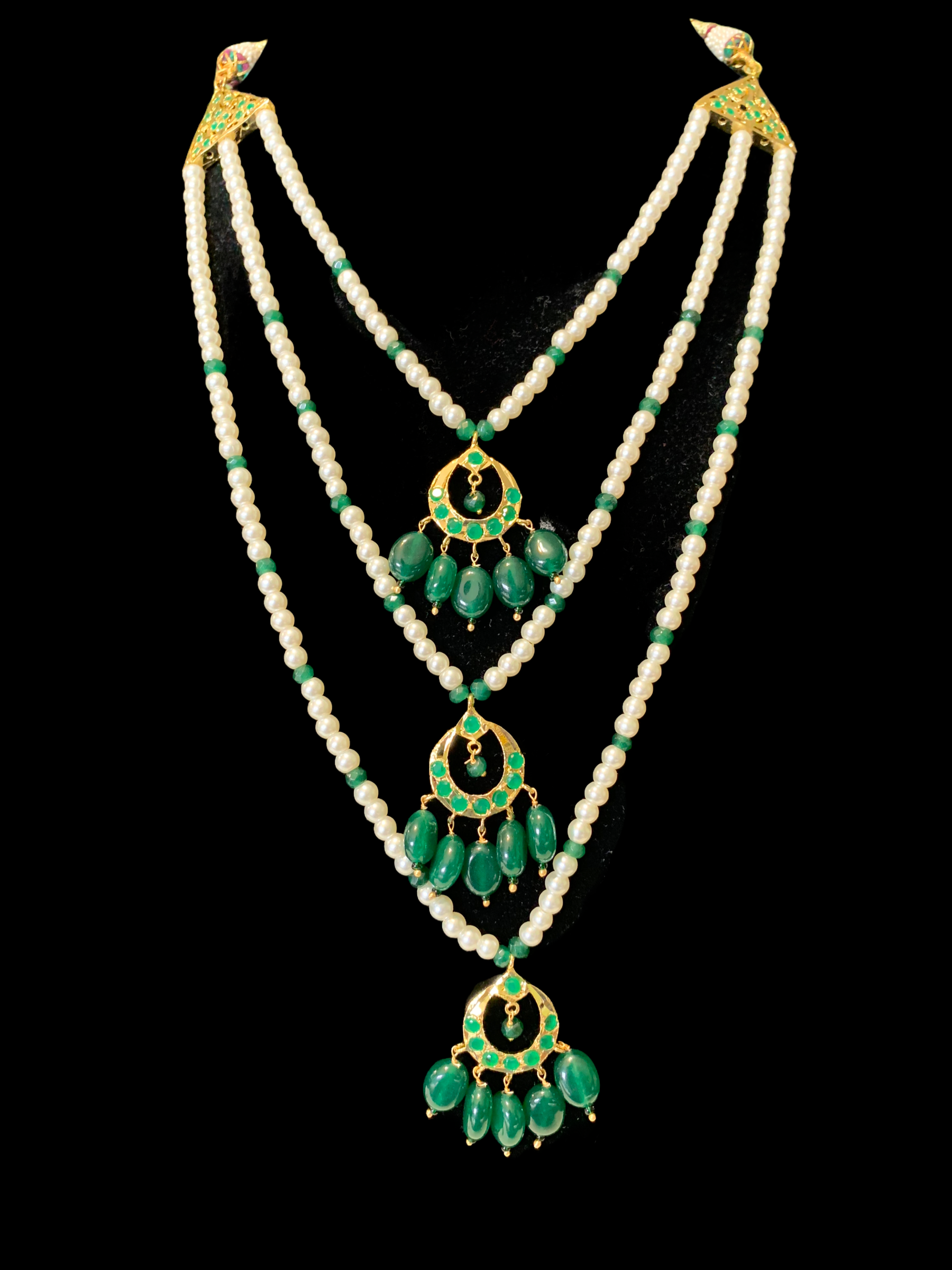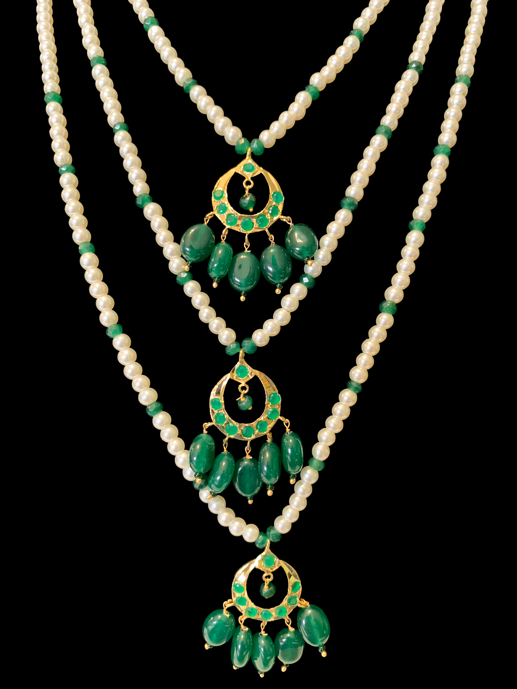 SAT71 Seema three layer necklace with chandbali- green ( READY TO SHIP )