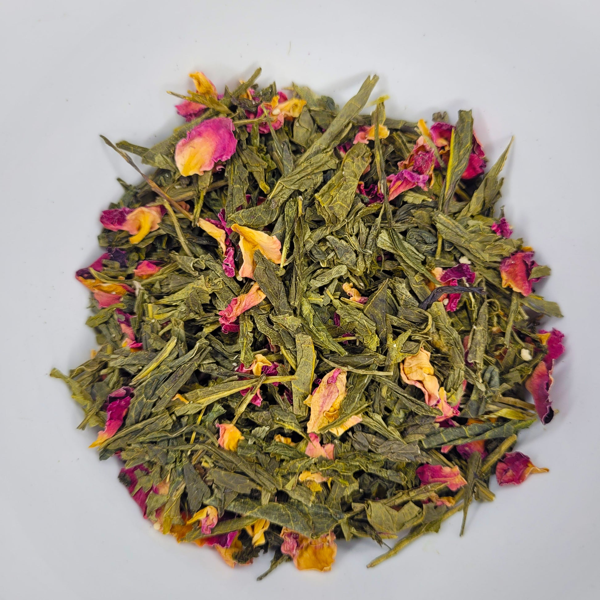 INGREDIENTS: Green Tea, granulated honey, rose petals, honey flavorings
