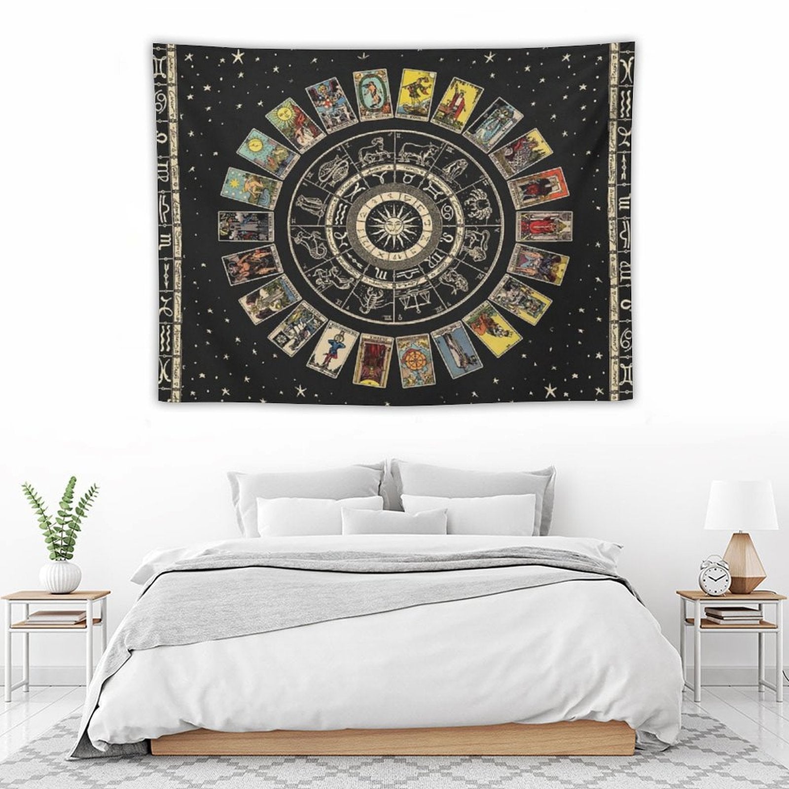 💓【MULTI-FUNCTION】 Used "Wheel of The Zodiac, Astrology Chart And The Major Arcana Tarot Tapestry" to decorate your bedroom, college dorm, room, living room, kitchen wall, can be used as tapestry or wall hanging, bedspread, tablecloth, dormitory decoration, beach shawl, tablecloth, etc.