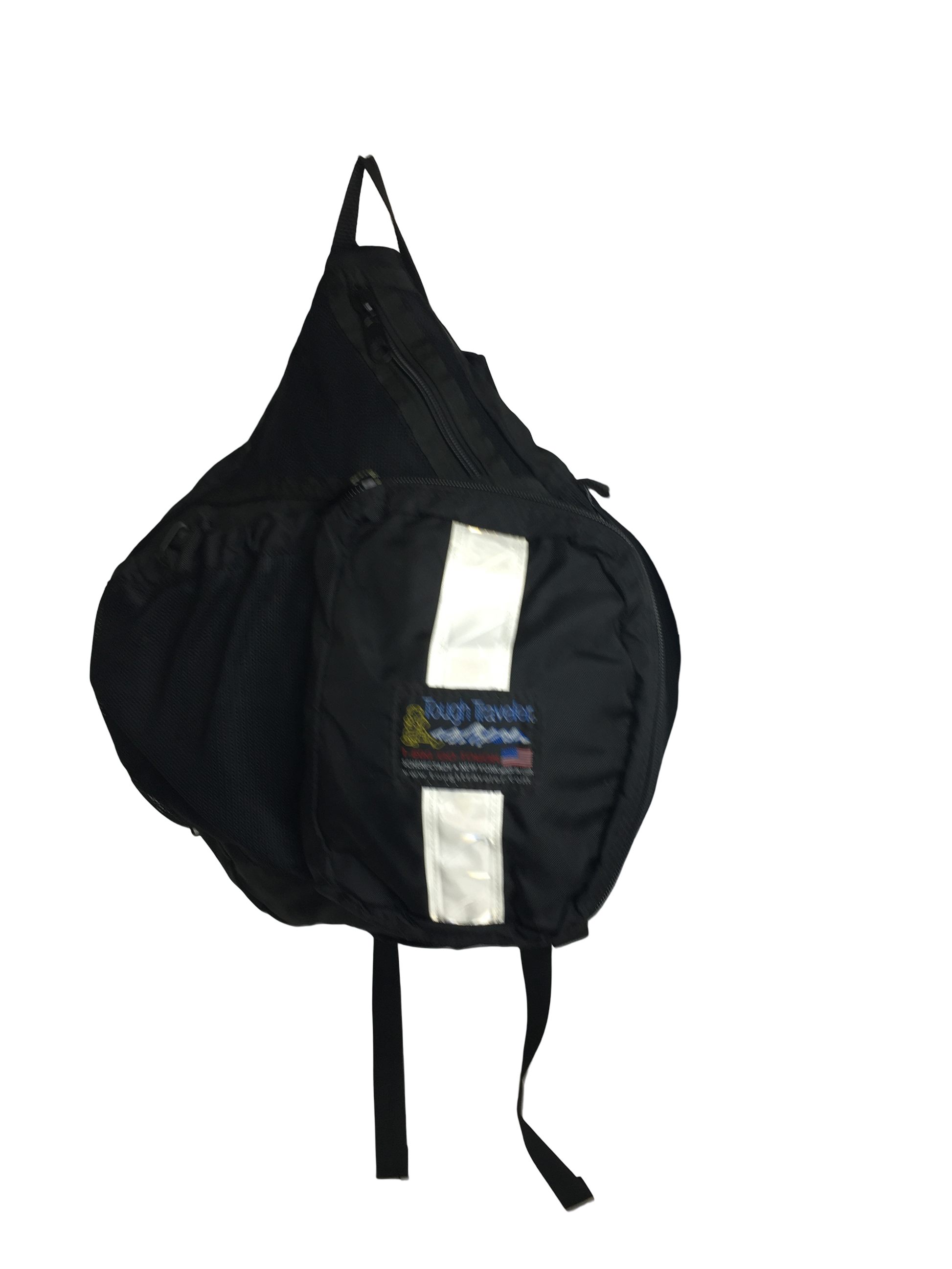 • Open flat pocket on back where backpack straps or shoulder strap can be stashed