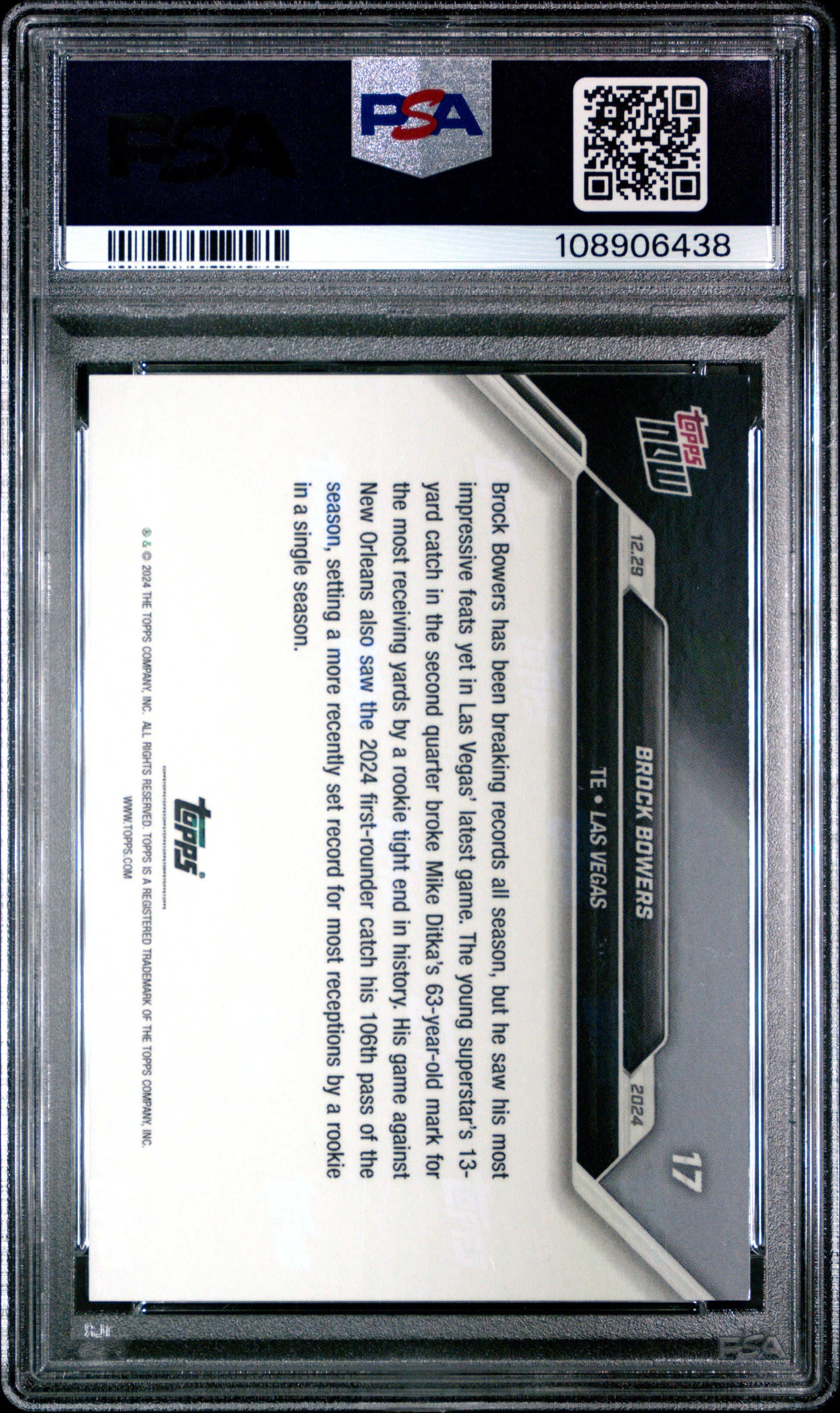Graded 2024 Topps Now Brock Bowers #17 Rookie RC Football Card PSA 10 Gem Mint