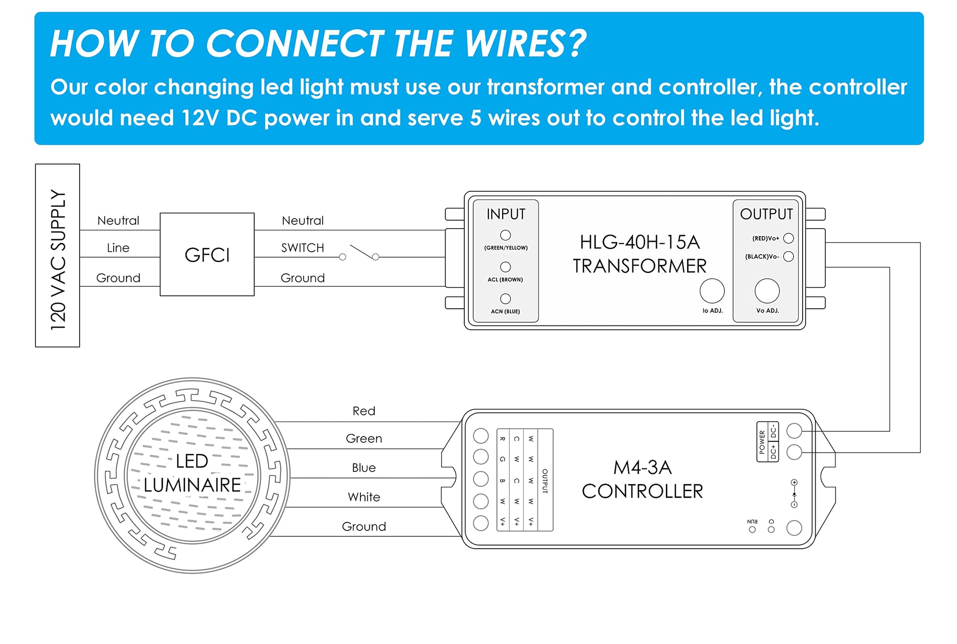 • Complete Package: Includes face ring, pilot screw, LED light assembly, 100' electric cord, 120V AC to 12V DC transformer, and M4 Remote controller system.