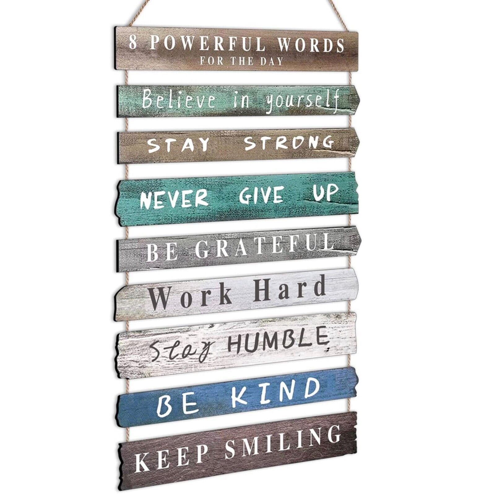Inspirational Wall Hanging Art Wood String 24 x 12" Brown Green Blue Rustic New