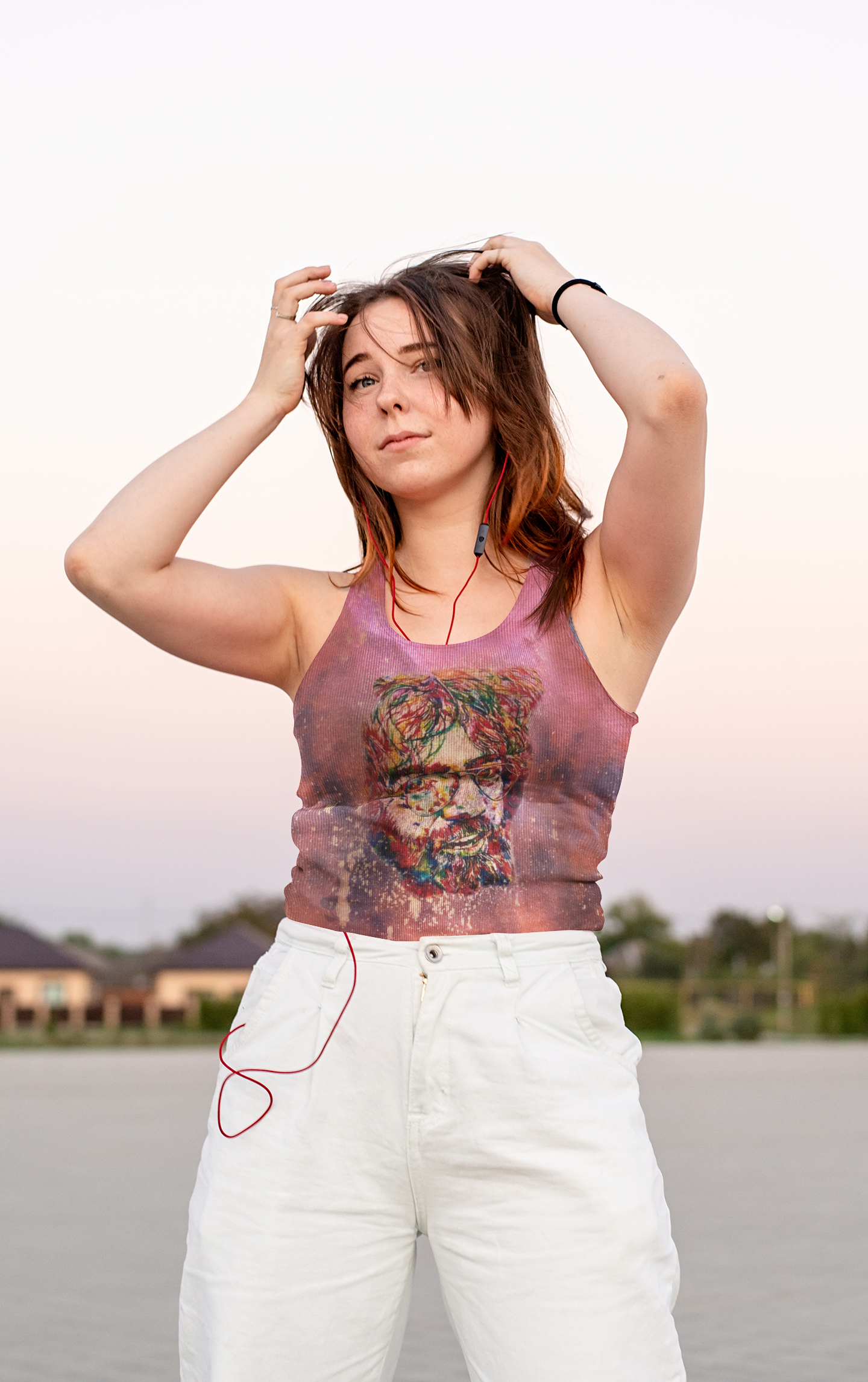 Keep it light and flowy in this racerback tank embellished with an icon. Created with a premium 100% single jersey polyester modal fabric giving it an ultra soft hand-feel. It comes in a flattering draped silhouette, round neck, and racerback.