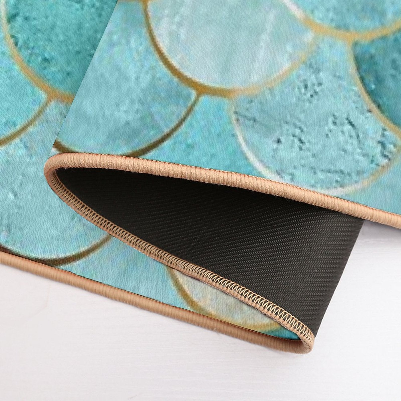 • Non-slip rubber backing grips floors securely, ideal for Moroccan Mermaid Fish Scale Pattern, Aqua,Teal Mat placements on tiles, wood, or marble.
