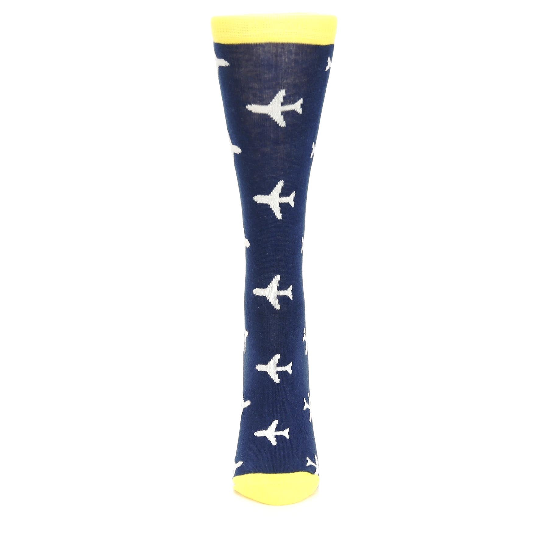Navy Yellow Airplane Pattern Women's Dress Socks
