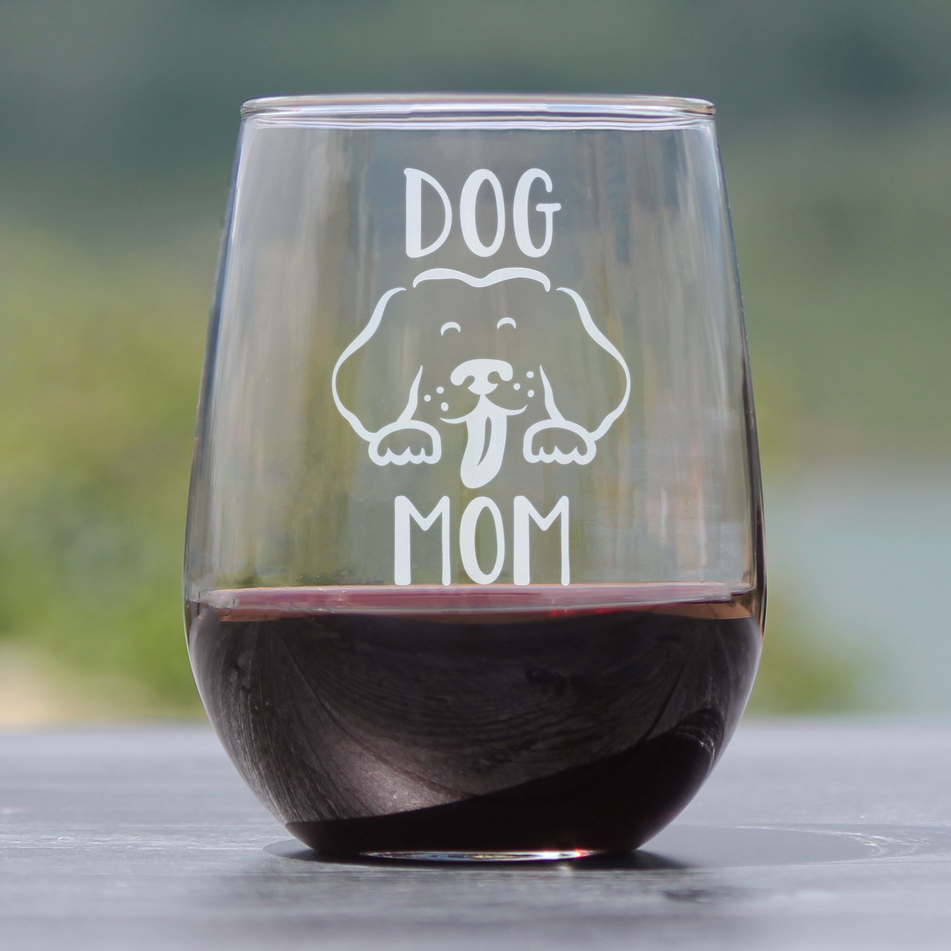 Dog Mom - Stemless Wine Glass - Cute Dog Lover Gifts for Women - Large 17 Ounce