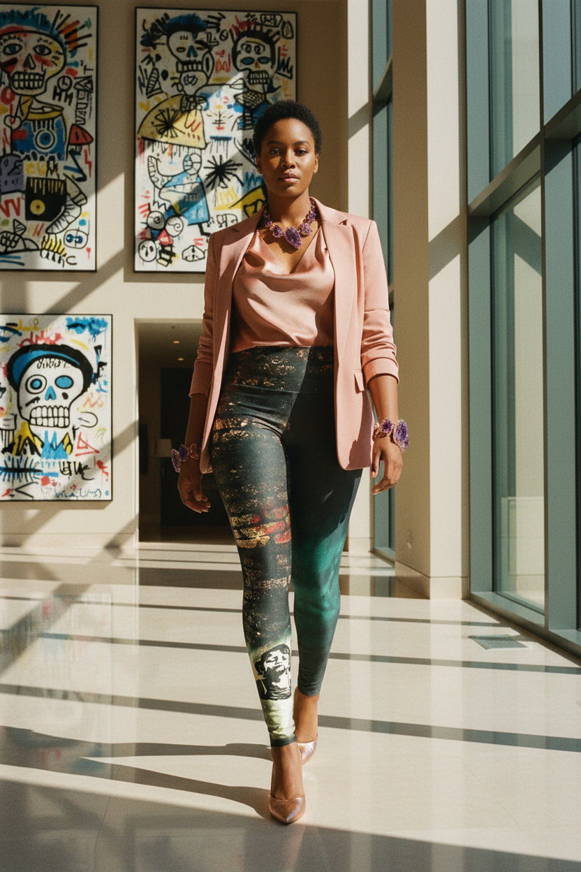 These leggings are not just ordinary pants. They are luxurious 4k renditions of hand-painted fabrics crafted with the utmost care and precision. Utilizing state-of-the-art high-end active fabric printing techniques, each pair is a work of art intricately designed to accentuate your curves and make you feel like a goddess. Slip into these leggings and let the soft, silky fabric caress your skin as you conquer the world with your undeniable confidence and style.