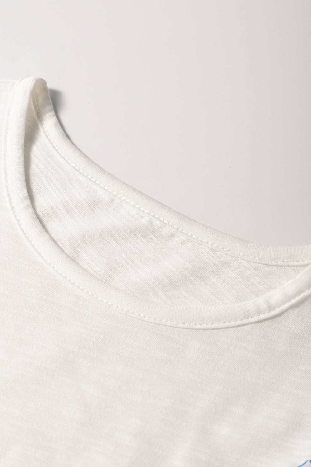Round Neck Printed Ruffled Cap Sleeve Blouse