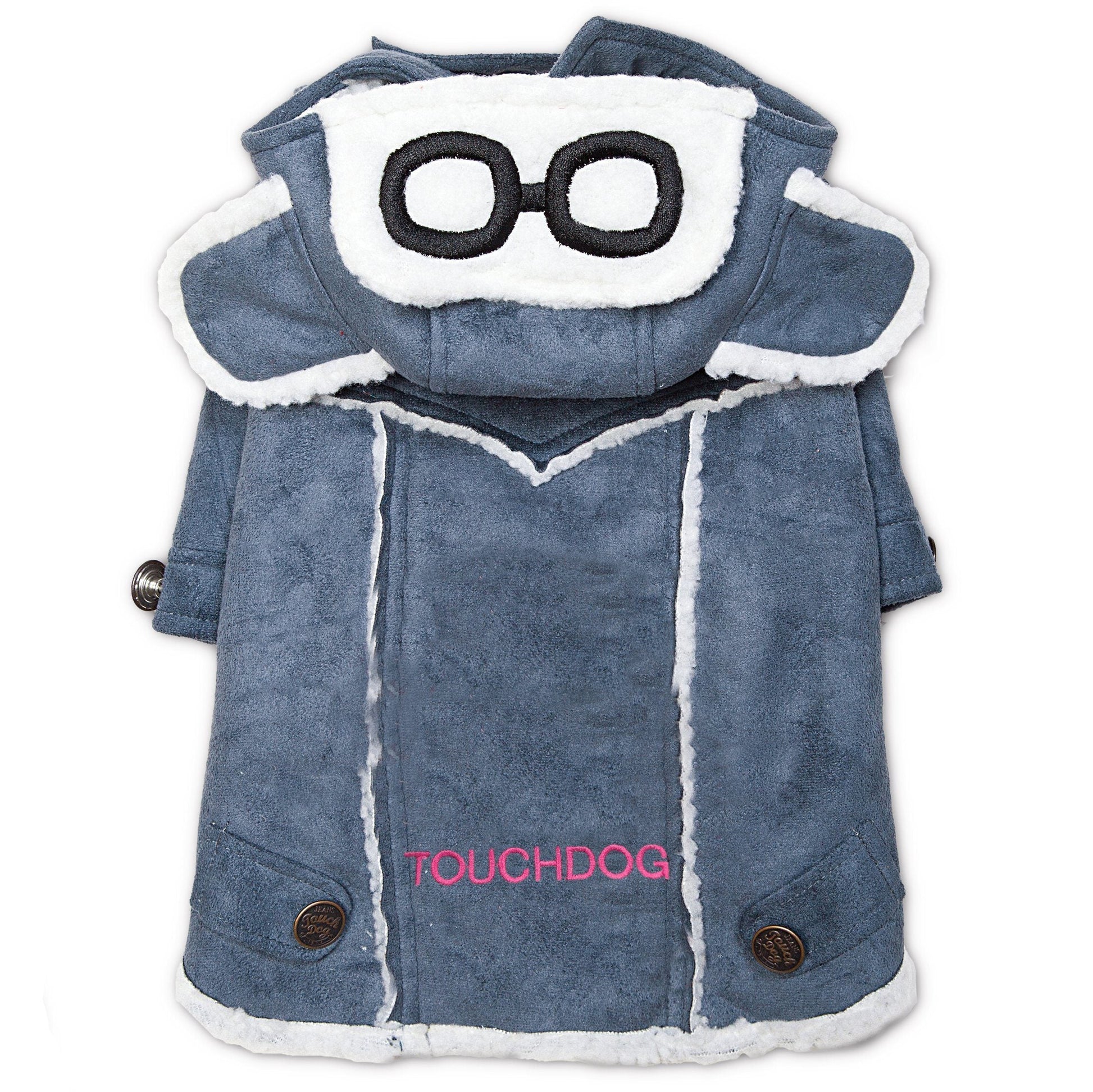 The Touchdog 'Tuskegee' Aero-Vintage Designer Fashion Winter Dog Coat is inspired by the official World War II aviation uniforms worn during U.S. combat. This Dog Jacket features a soft seude-like Exterior Shell with Sherpa Inner-linning that is reversed onto the back stitching. Detailed with a designer hood with etch-embroidered vintage aviation glasses and earmuffs, and engraved buttoned trims with a cross-jaw strap for added warmth. Available in Multiple Sizes and Colors.
