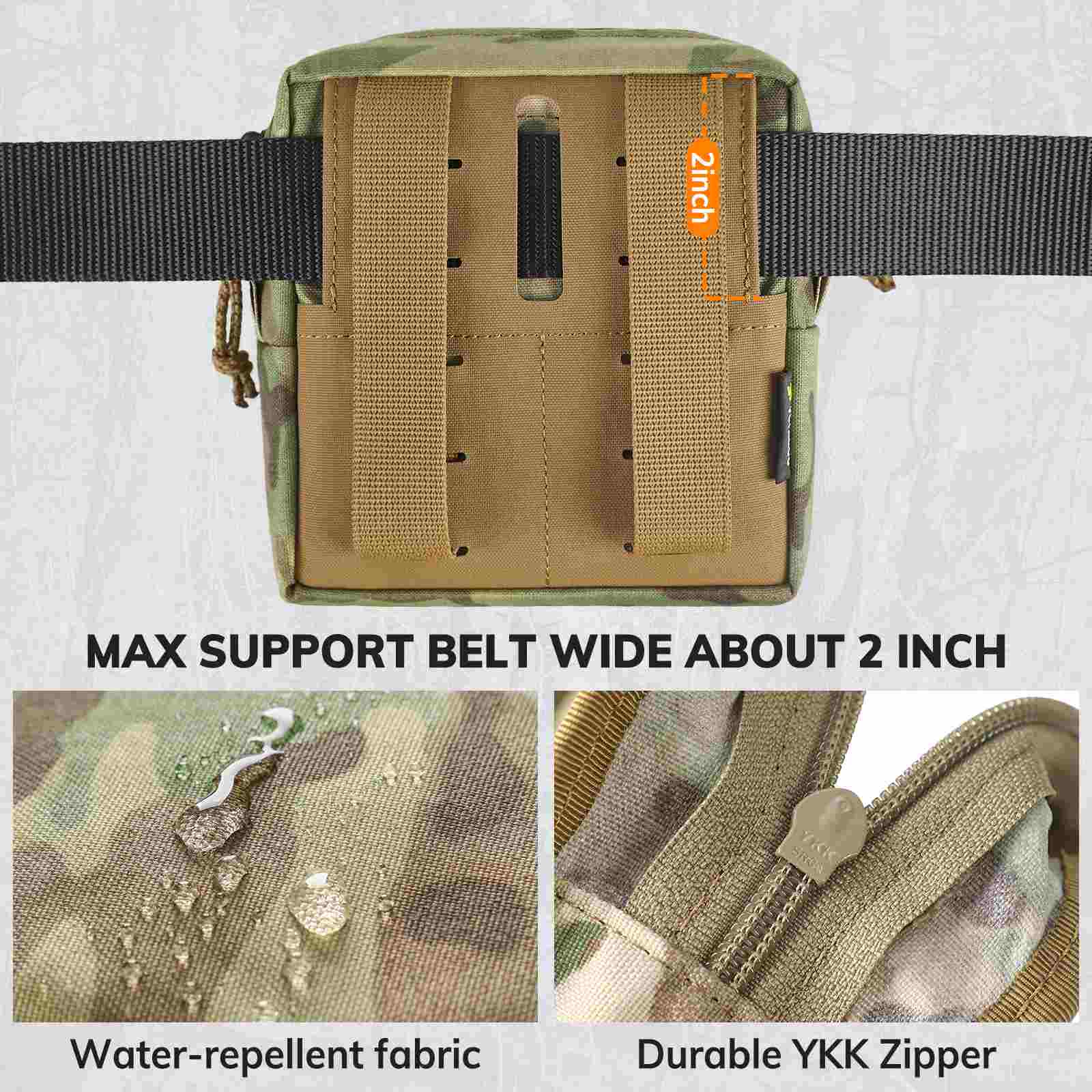 - User-Friendly and Multi-Functional Design: Not just a tactical storage pouch, it can also serve as a MOLLE bag, small tactical bag, utility pouch, or EDC carry pouch. It pairs well with tactical backpacks, combat vests, belts, and other gear, providing additional external storage space. Whether for daily commuting or tactical missions, it handles everything with ease.