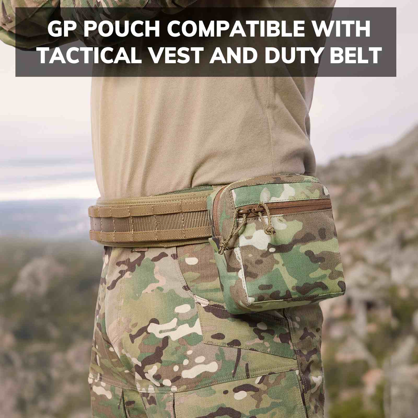 - Large Capacity Design: This GP Pouch features a dual-layer design with a main compartment and a front pocket. The main compartment is extra deep, easily accommodating tactical gear such as night vision devices, rangefinders, and handheld anemometers, while the front pocket is perfect for storing smaller items like VS-17 panels or SSE bags. Whether used as an EDC Pouch or a tactical storage bag, it meets your daily and outdoor needs.