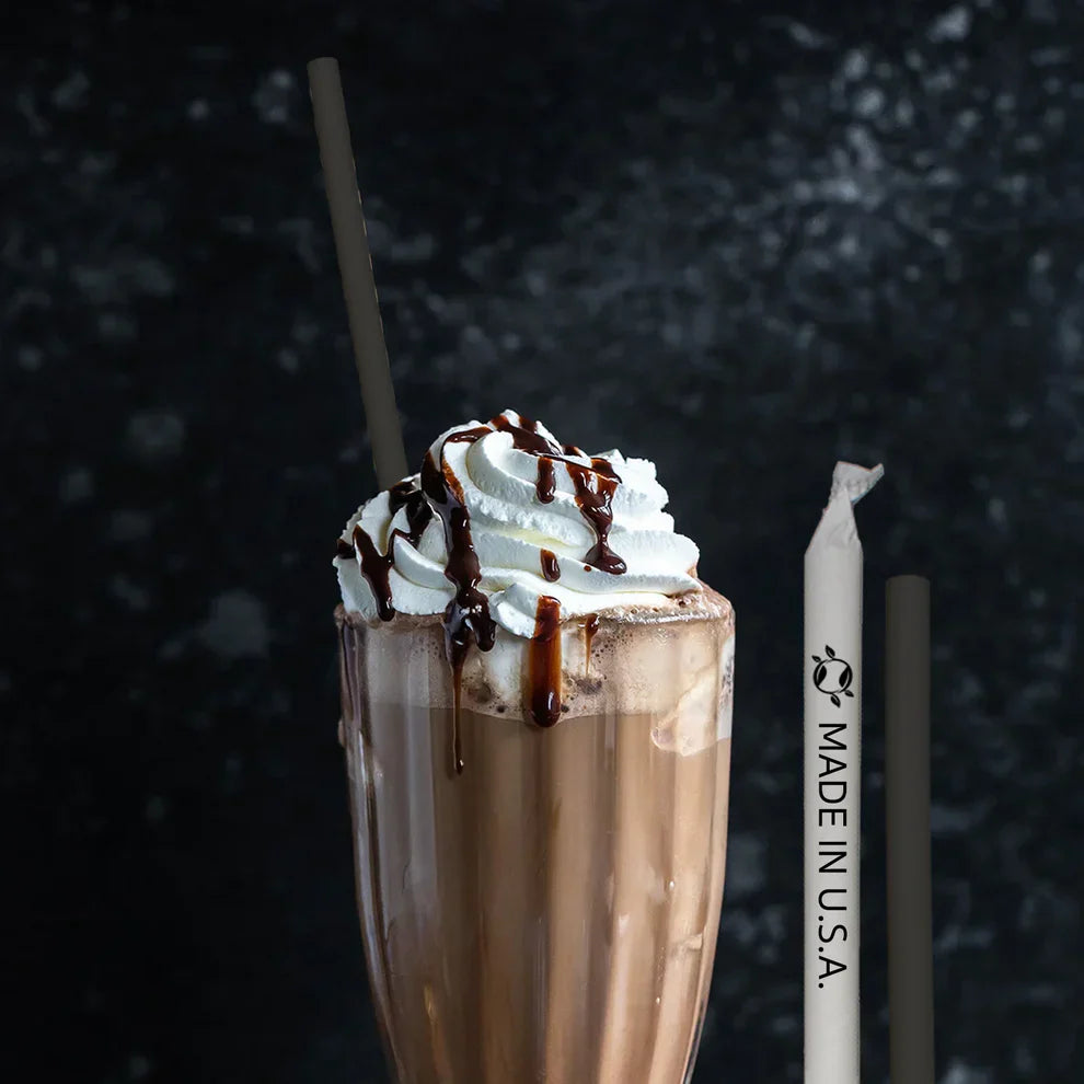 Elevate your drinking experience with ForeverGreen’s 7.75-inch black jumbo compostable drinking straws, a sleek and sustainable choice for any beverage. Individually wrapped for hygiene, these straws are perfect for upscale restaurants, bars, events, or everyday use at home.