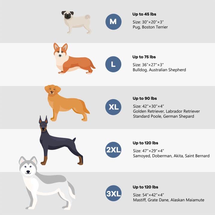• Measures 42"x30"x4", recommended for dogs up to 90 lbs