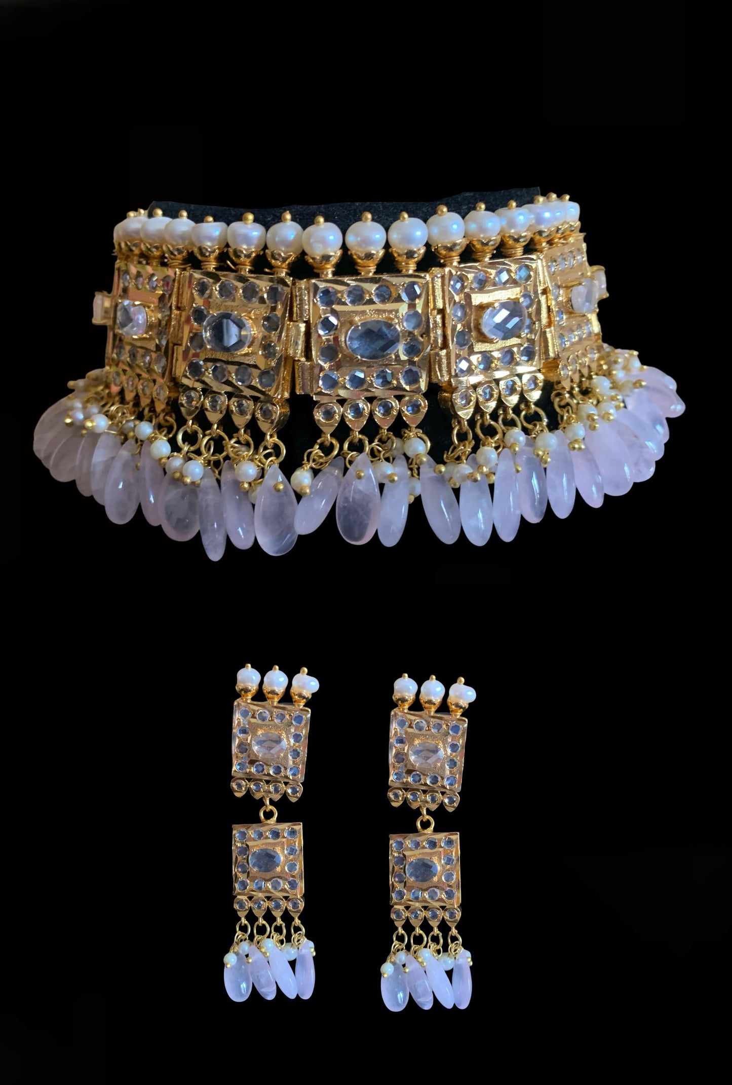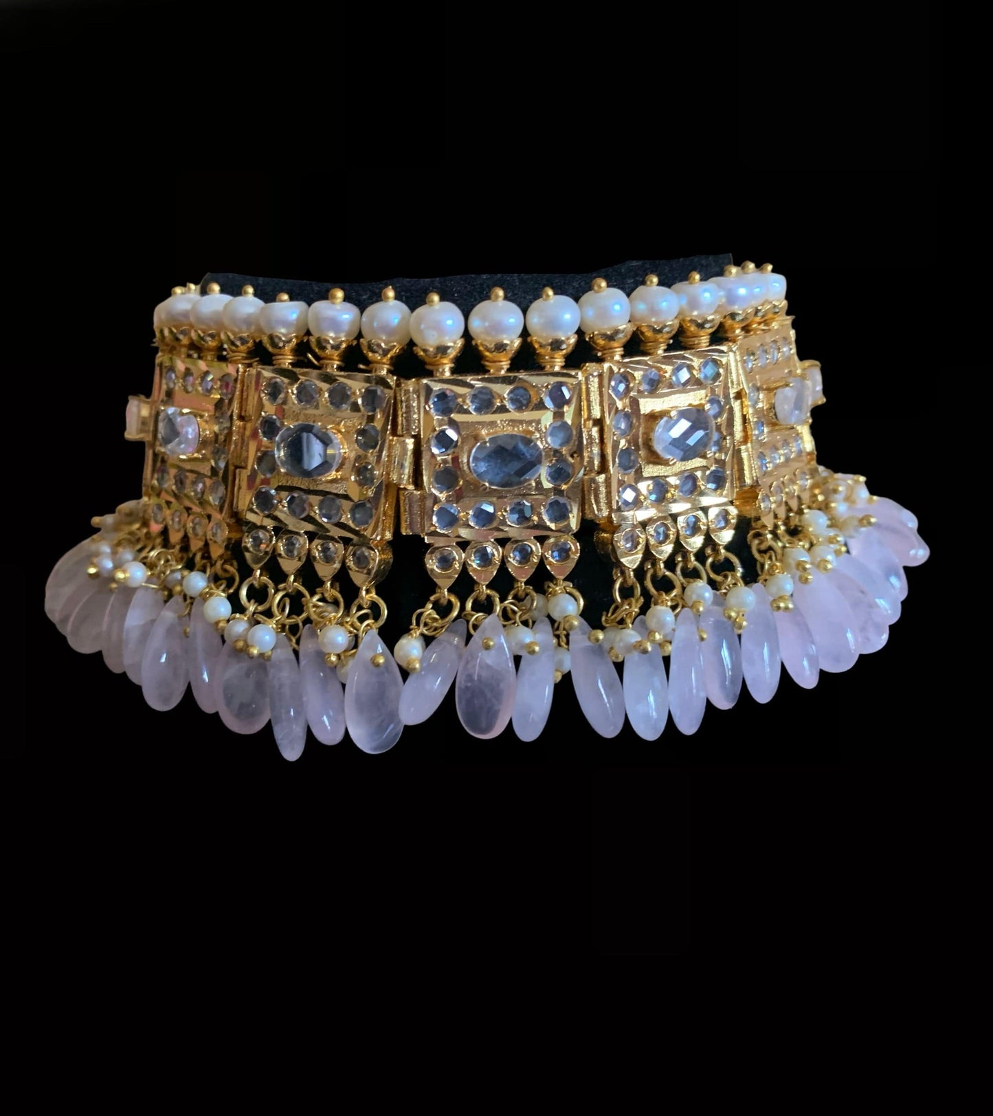 C152 Eeshal polki choker in rose quartz beads ( SHIPS IN 3 WEEKS )