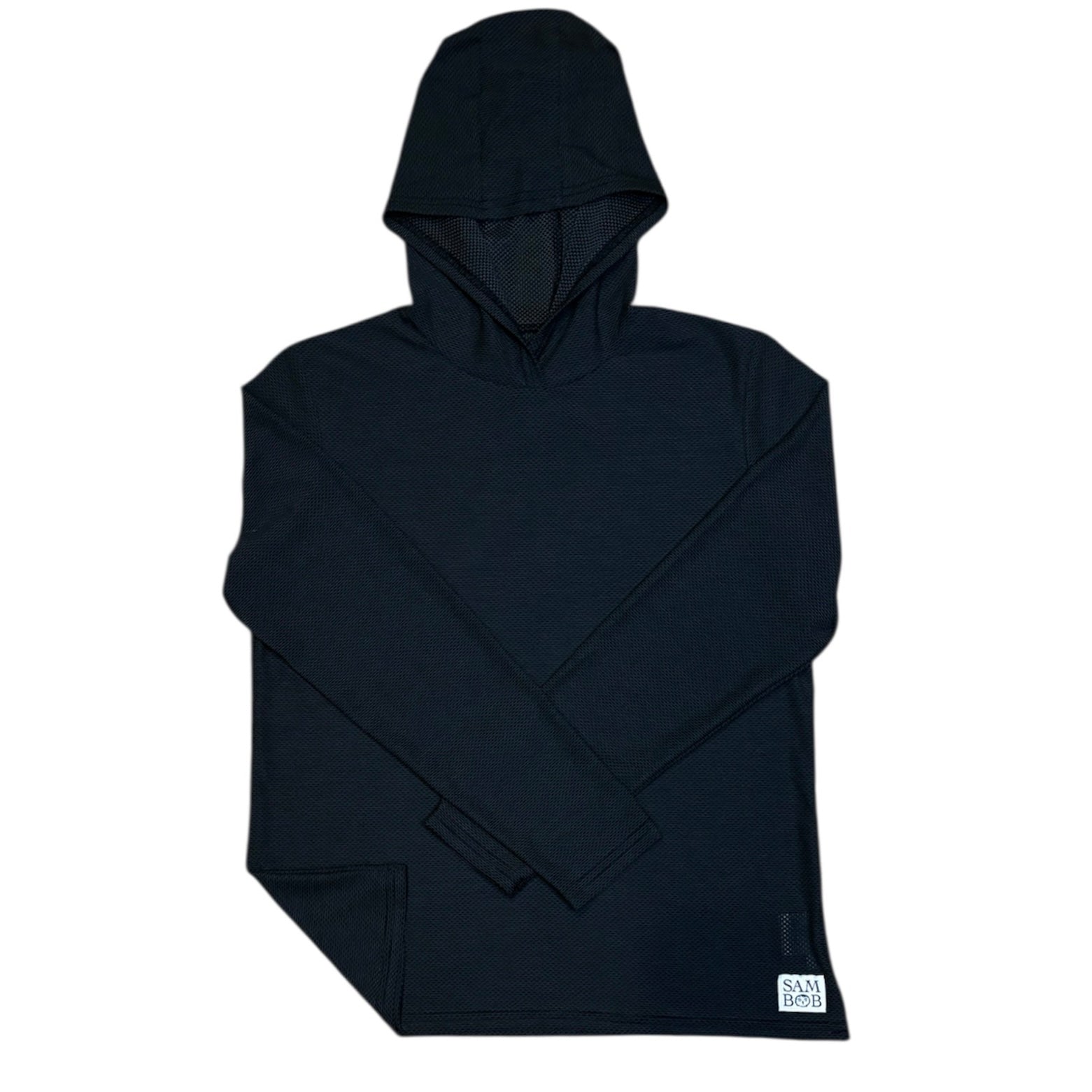 Fabric tech: The Basin Sun Hoodie is made from an ultralight version of Polartec© Delta™ fabric, which provides UPF 15 sun protection (blocking 93% of UV rays) and is designed to keep you cool by dispersing moisture away from the skin, improving breathability and minimizing cling from sweat. It is essentially a fine mesh, allowing for air to pass through easily. Of course this also means it’s a bit less protective than the Coastal and Alpine Sun Hoodies, as they use heavier, more robust fabrics.