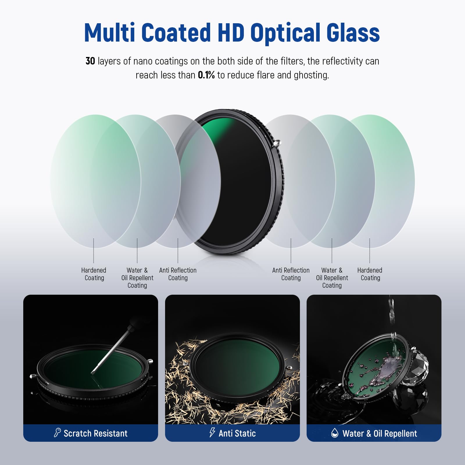 With its ultra-slim design and multiple resistant coatings, this filter is both practical and durable. The high-quality optical glass and nano-coatings minimize flare and ghosting, ensuring optimal image quality.