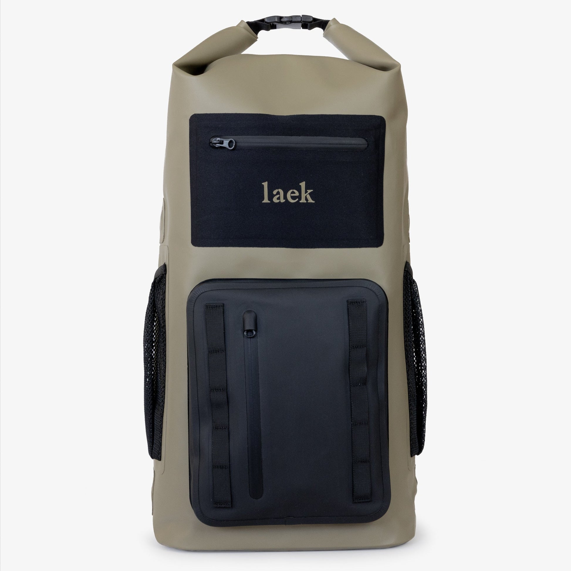 Our waterproof backpacks are designed for resilience and adaptability, keeping your belongings dry on the water or in a downpour. The rolltop closure provides easy access and extra capacity when needed. The pack features a sizeable protruding pocket, an upper soft shell pocket, two durable mesh water bottle pockets, and four attachment points for securing gear. Comfort is ensured with a structured back panel, soft padding, and cushy shoulder straps. Inside the pack is a mesh zipper pocket and velcro strips to attach a laptop sleeve. This submersible bag is made of recycled 600 denier polyester with a double-sided TPU coating for sustainability and longevity. On the bottom, a thick 1000 denier panel adds extra protection.