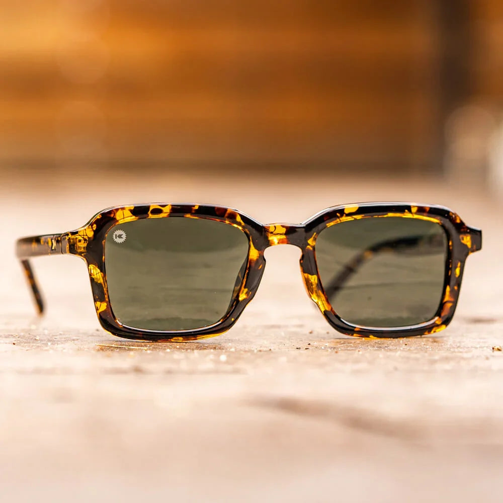 Equipped with elegance and ready to impress, our Au Revoir Panoramas hit the bullseye on timeless fashion. Embrace tortoise-tinted glamor throughout this stylish pair of polarized sunglasses, all the while showing off fanciful gold ‘K’ detailing. Aviator green lenses offer UV400 polarized protection and impact resistance along with boosting intrigue for curious onlookers. For your first impression, we suggest dressing to the nines in your best sassy outfit and serving accordingly.