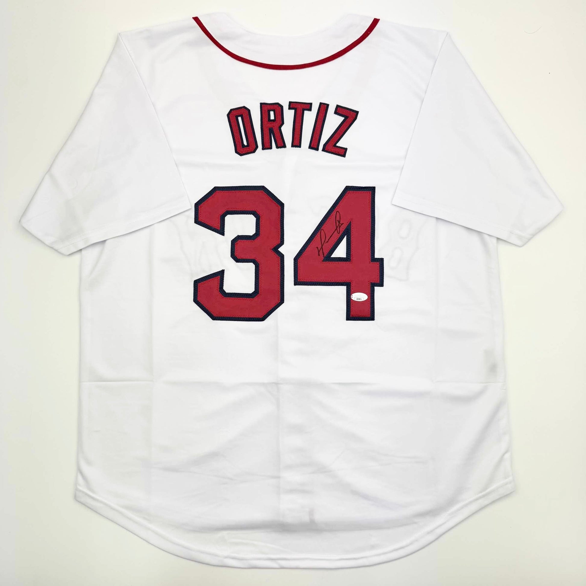 Autographed/Signed David Ortiz Boston White Baseball Jersey JSA COA