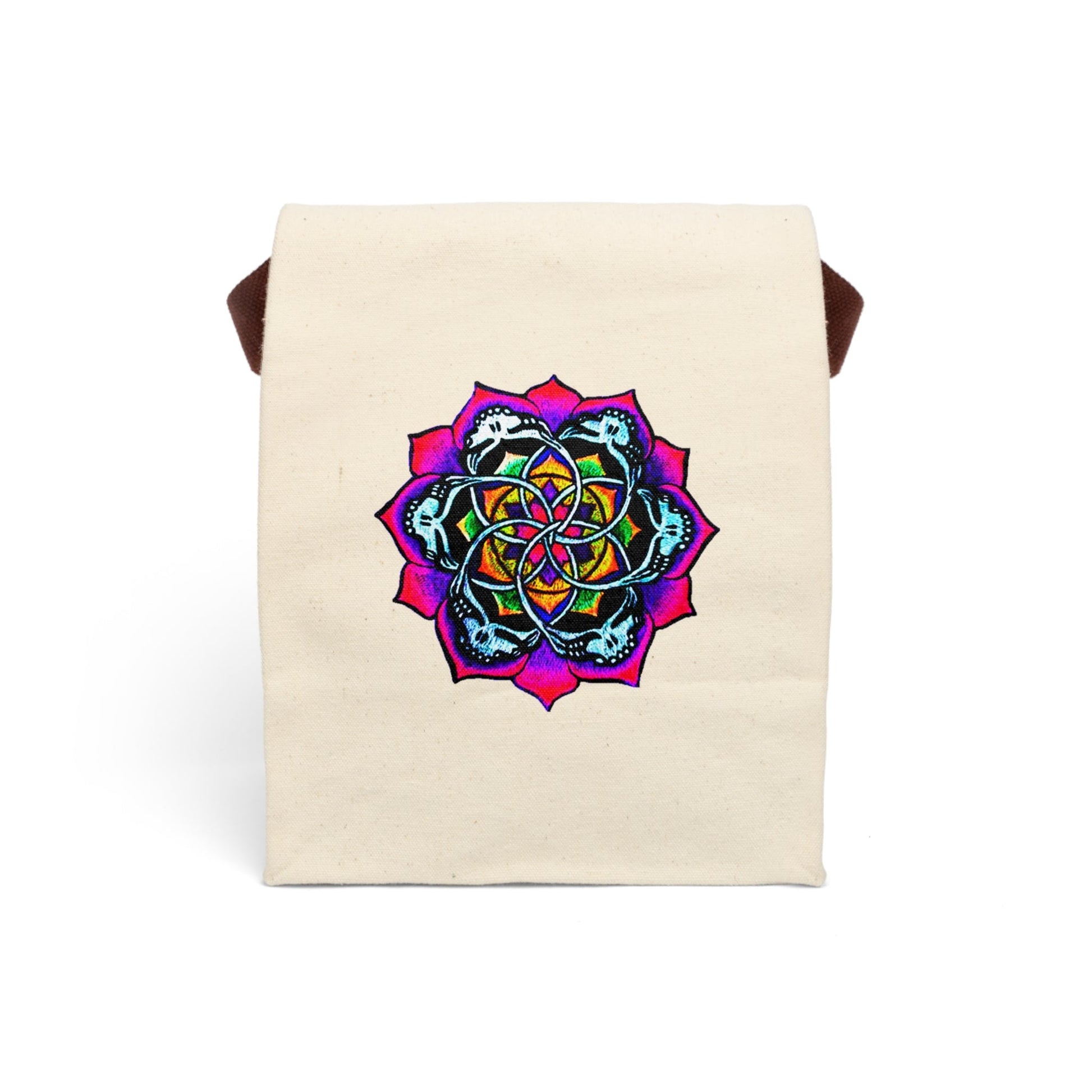 Introducing the most stylish lunch bag in every school, office cafeteria, and music festival. Its top rolls down and closes with a hook and loop tape, creating a paper lunch bag look. Made from 100% cotton canvas, it's durable and lasts ages. The strap handle makes it easy to carry around wherever you go. Perfect for snacks and three-course meals.