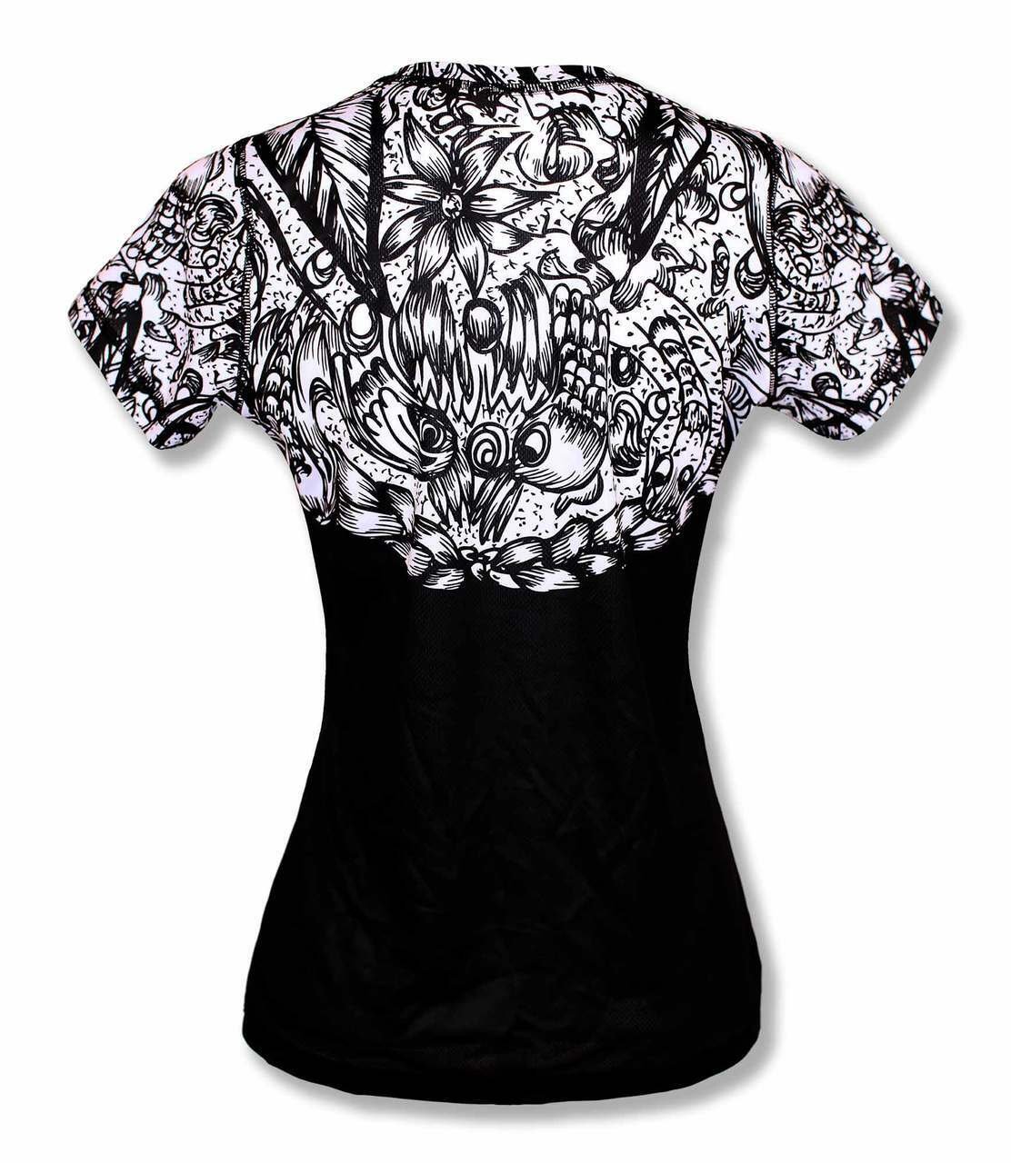 Classic black, white and a single red rose make this Women's Skull and Rose Tech Shirt a true stand out. The ink strokes loosely come together to form a large skull shape and we even hid our trademarked, "Run or Die" phrase, in the teeth. Roses are a symbol of sacrifice, a trait common to all athletes who go after goals that other's wouldn't even consider. This shirt is about fighting with everything you have to thrive.