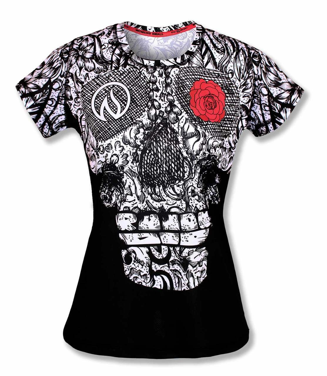 INKnBURN Women's Skull and Rose Tech Shirt, X-Small