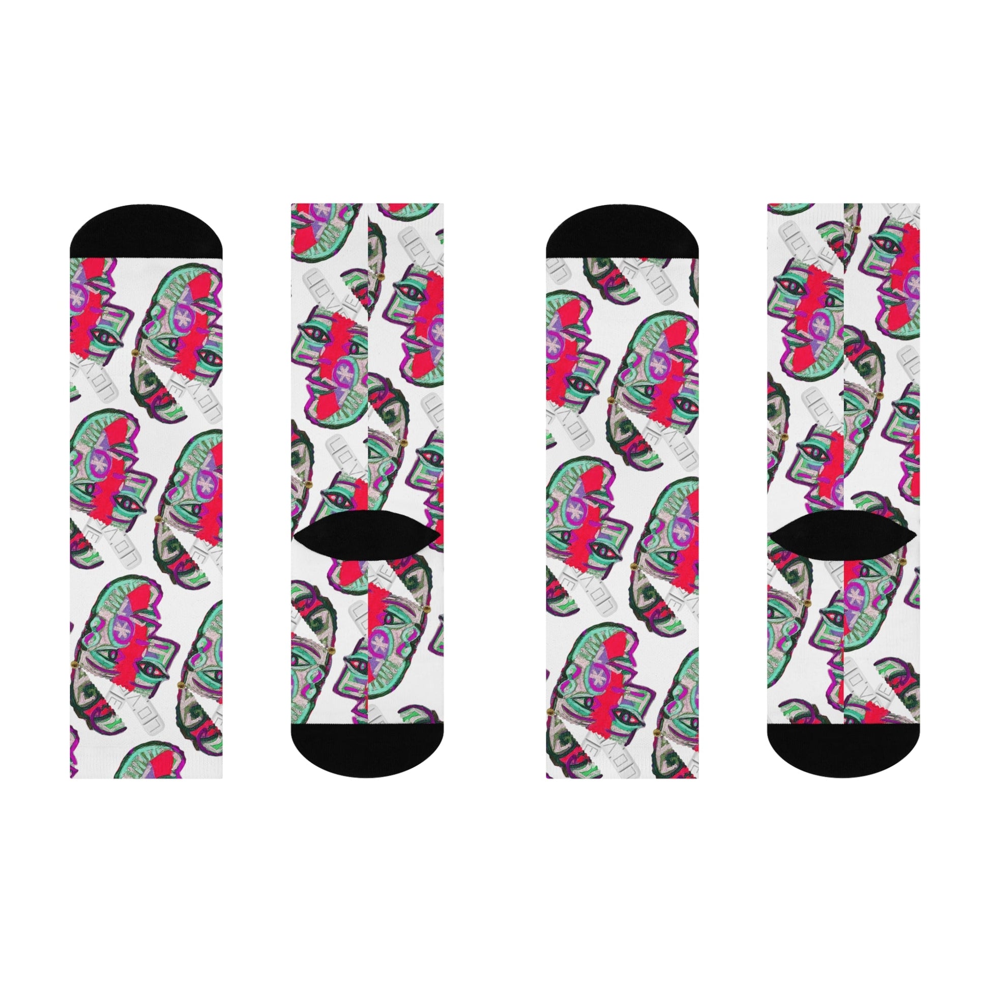 These cushioned crew socks are a one-size style designed with both function and appearance in mind. With the fully cushioned heel-to-toe, these socks provide superior comfort, while the art print process allows for ultra-crisp, crease-free printing.