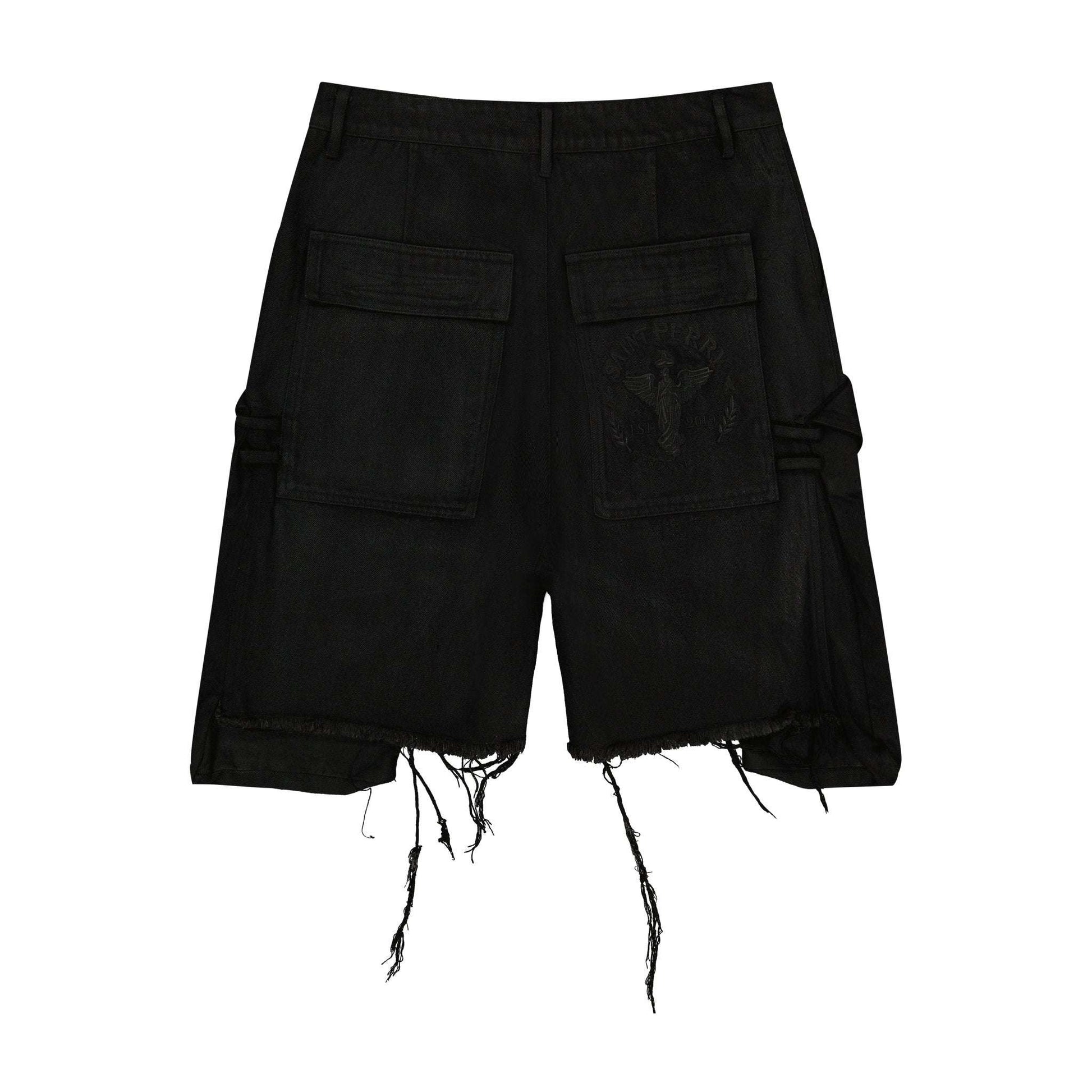The OX Cargo Denim Short embodies Saint Perry’s rugged refinement — blending utilitarian design with modern streetwear edge. Crafted from durable 100% cotton black denim, it features a relaxed fit and mid-rise waist that deliver both comfort and versatility. Distressed detailing adds a bold, lived-in character, while multiple pockets enhance practicality and function. Made in Portugal with meticulous craftsmanship, the OX Cargo Denim Short is built for everyday wear with enduring style.
