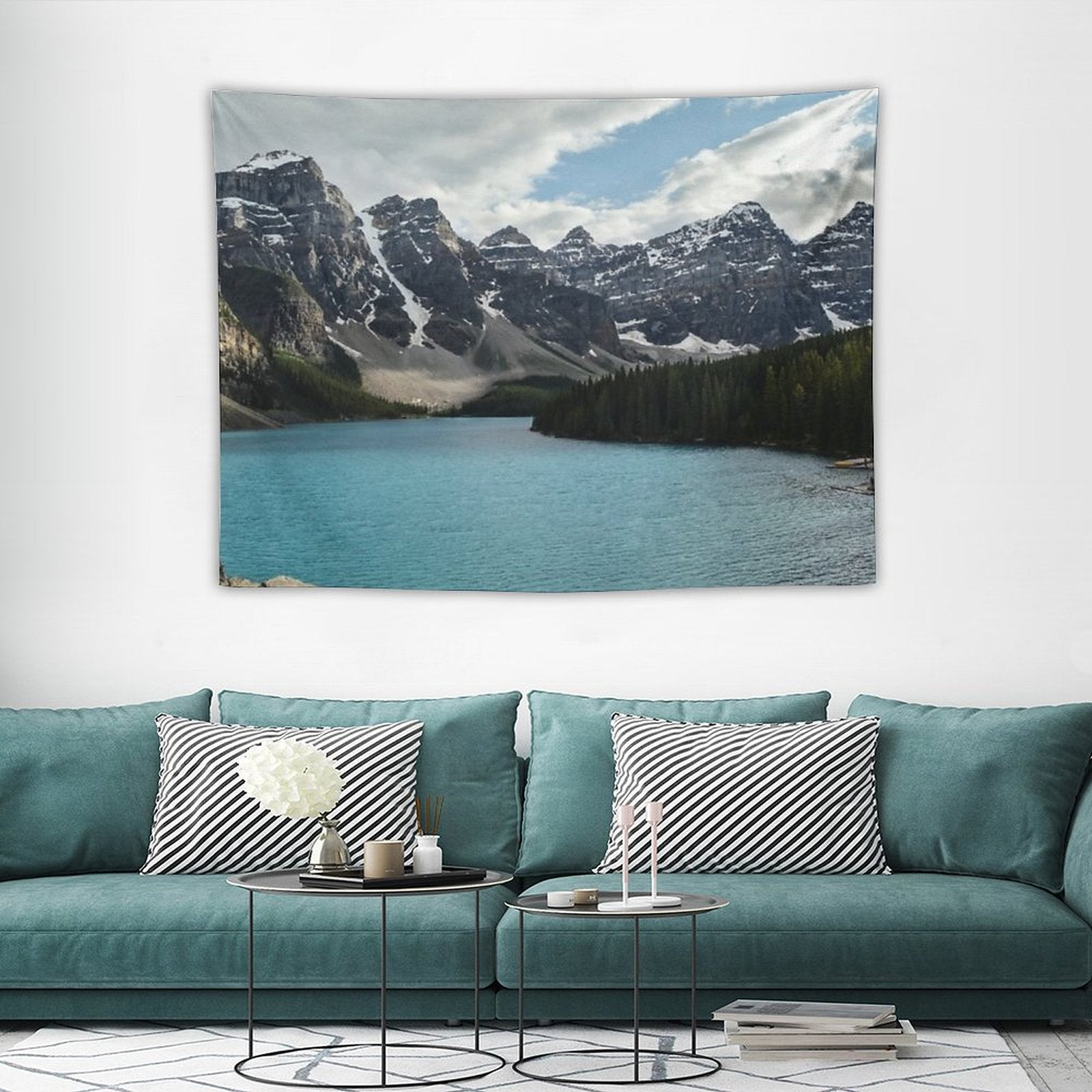 BionZax's Rocky Mountains Blue Lake National Park Tapestry for Bedroom, College Dorm. Rocky Mountains Blue Lake National Park Tapestry to decorate your bedroom, college dorm, living room, or kitchen wall, it is the best gift for funny, meme, aesthetic, trendy, simple, fashion, music, abstract, fantasy, modern tapestry for girls, men, boys, teen, women, kids.