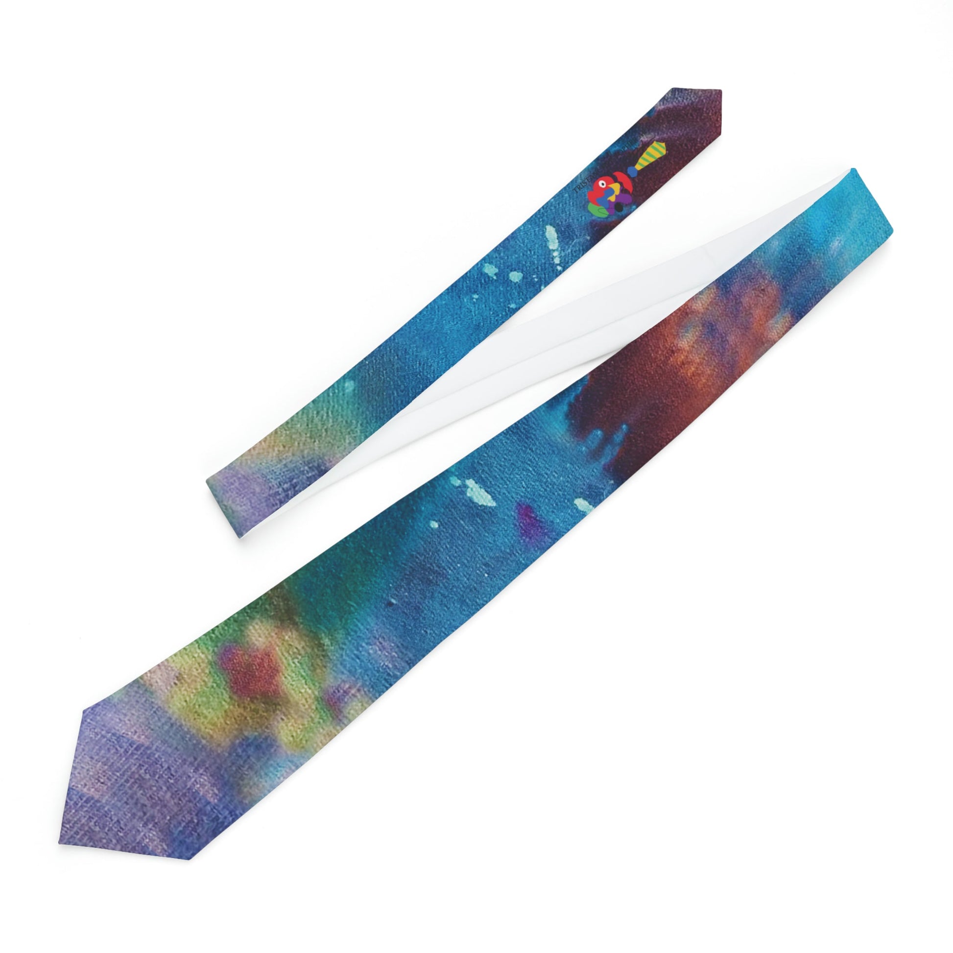 Spice up the office, or the next festival party. A fun spin, dazzling graphics, and beautiful artwork. You'll be an instant favorite. Made of 100% High End Brushed poly. The fabric offers a silky finish along with a keeper loop for holding the tie tail. Whether it's a humorous, a personal, or a professional vibe, this custom hand dyed print tie will up the vibrations in the room.