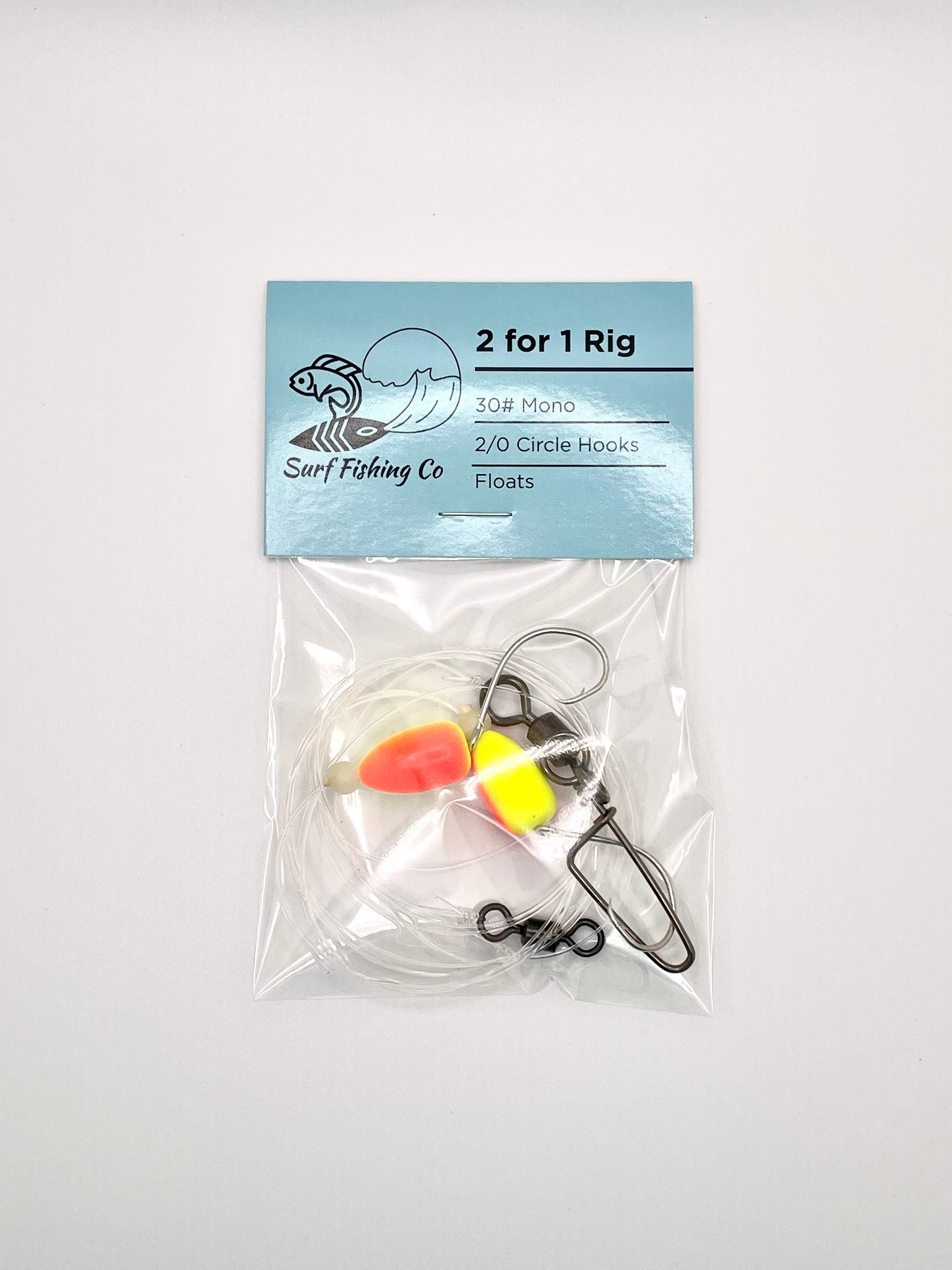 Enhance your fishing experience with our 2 For 1 Rig! The colors and patterns on the floats are made to imitate a sand flea. This is a bait most saltwater fish can't resist!