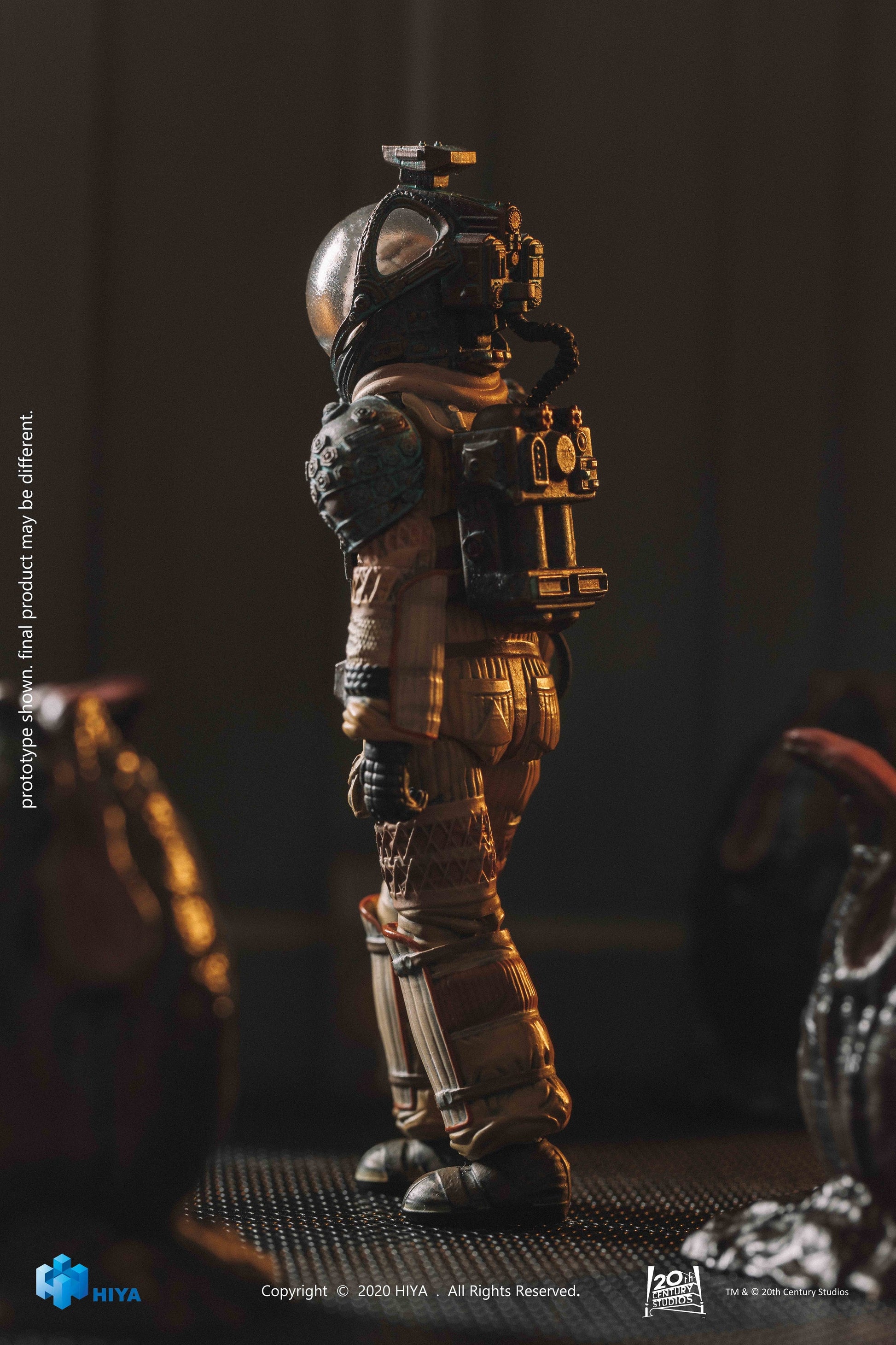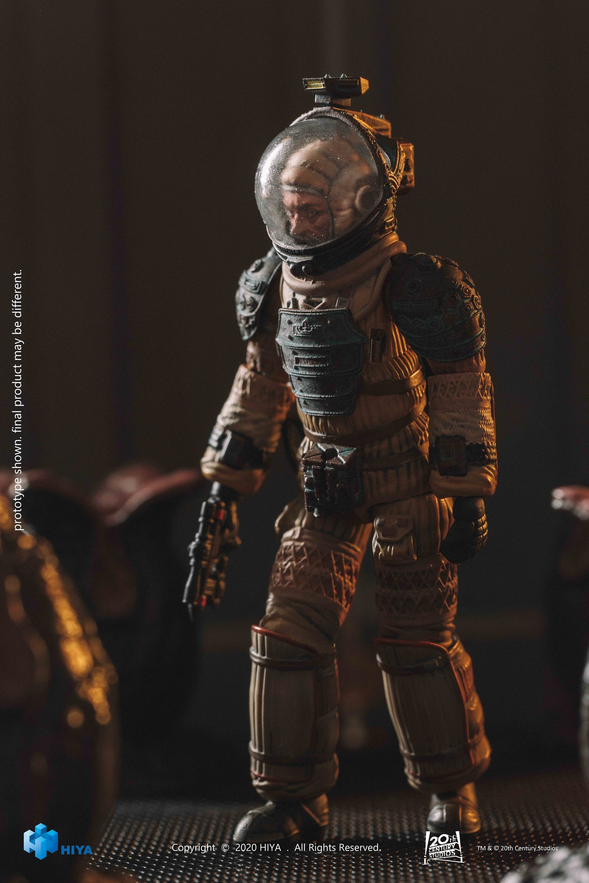 From Hiya Toys. A PREVIEWS Exclusive! Thomas Kane, the executive officer aboard the commercial towing vehicle USCSS Nostromo, was serving on the ship during its fateful voyage in 2122 when it encountered a Xenomorph! Now, Hiya Toys presents this spacesuit version of Kane from the movie before he was attacked and impregnated by a Facehugger. This 1/18-scale figure stands approximately 4 1/4" tall and comes complete with a blaster accessory.