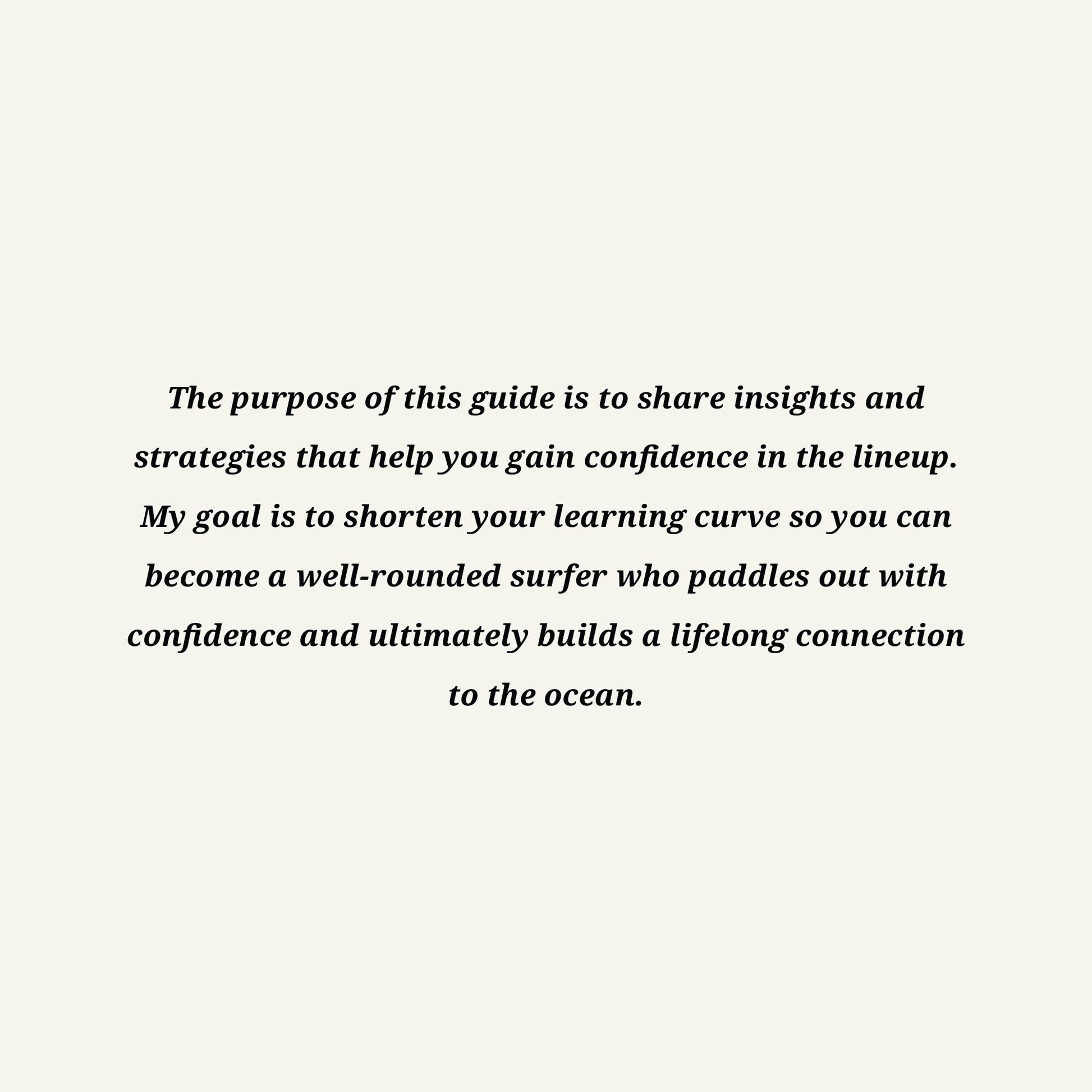 My goal is to shorten your learning curve so you can become a well-rounded surfer who paddles out with confidence and ultimately builds a lifelong connection to the ocean.