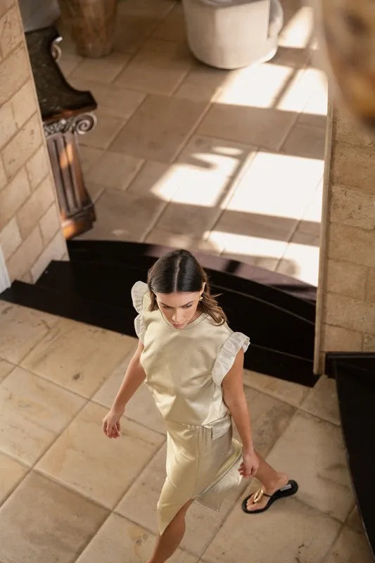 Annie Wear Mix Media Metallic Knit Ruffle Sleeve Top