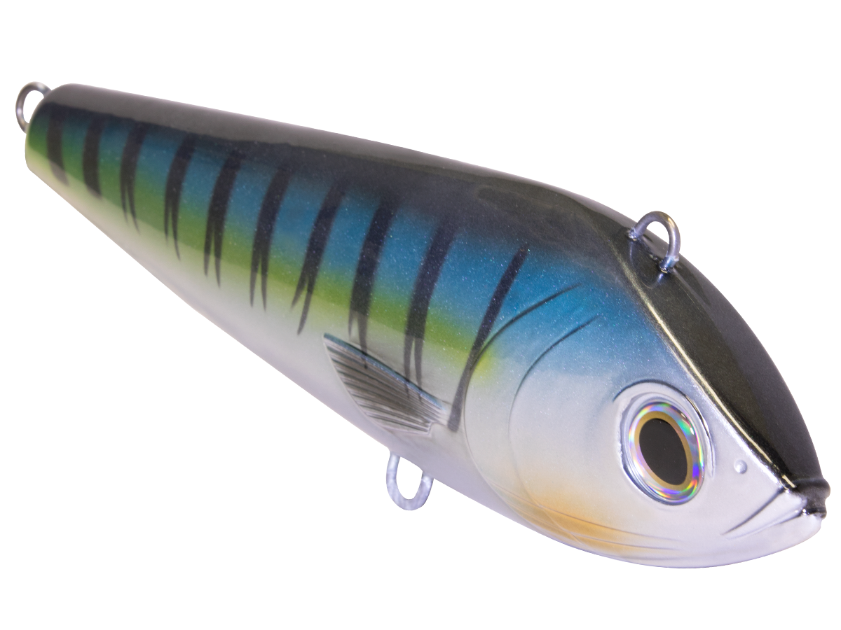 Designed to attract the biggest fish that swim in the biggest offshore waters in the world, the BIG SHOT was engineered to excel at high trolling speeds for wahoo and tuna (but it'll attract everything from Dorado to Yellowtail!). It starts with the Big Shot's ultra-tight action, which holds true whether you're trolling it in the prop wash or off a downrigger. This action is catapulted to the next level with Electronic Baitfish Sounds, which broadcasts the sounds of baitfish (Bonita, etc.) and boosts the Big Shot's attraction radius by up to four times that of traditional trolling lures. The Big Shot is constructed to hold up to big-water abuse, with wire-through construction and heavy-duty components.